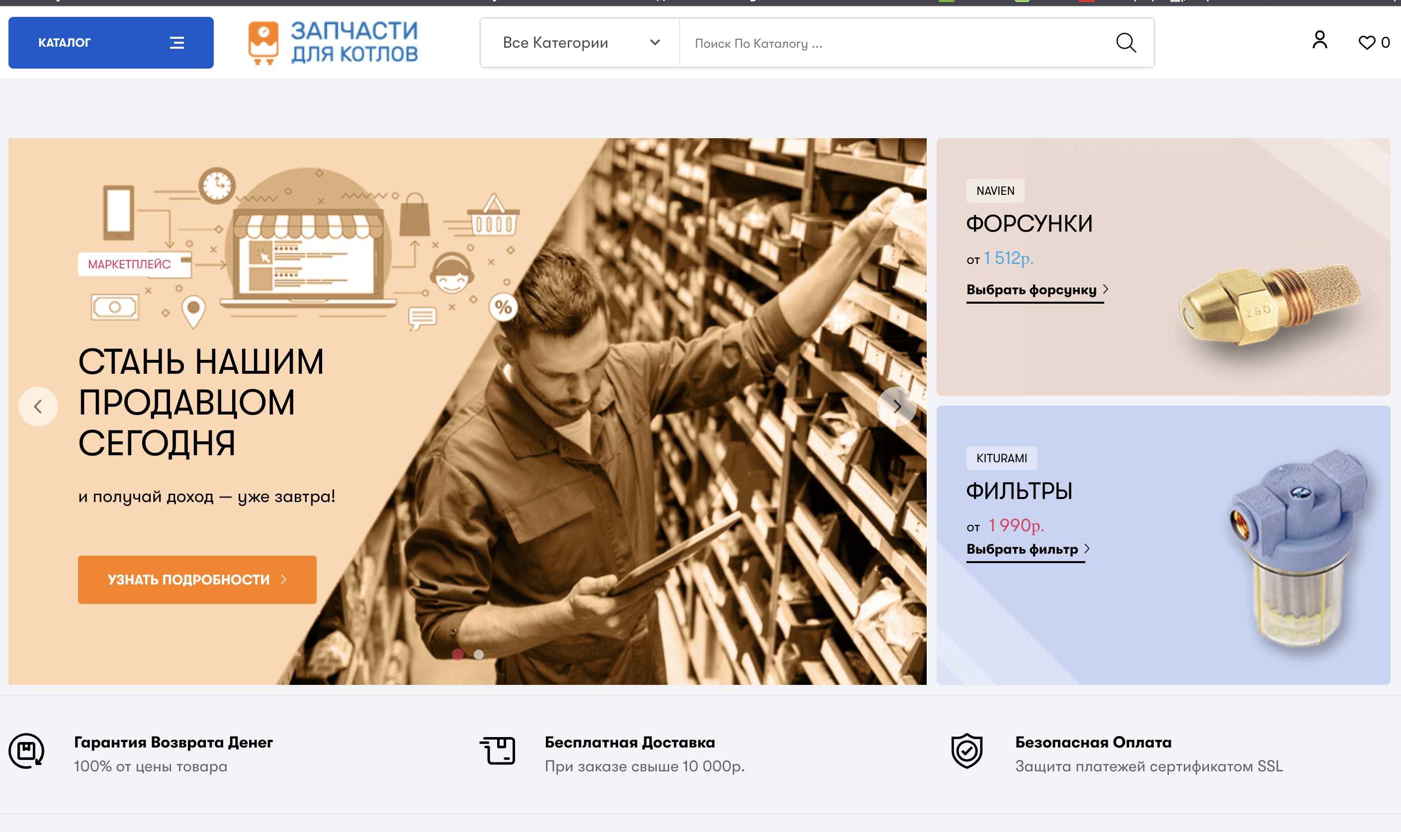 Продается готовый интернет-магазин по продаже Котельного оборудования: запчастей для газовых и дизельных котлов, а также сопутствующего оборудования. Может быть приспособлен для продажи любого типа продукции (например бытовой техники и/или расходных материалов к ним).