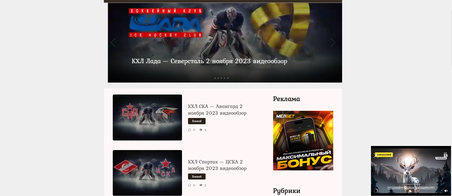 Sportbanner — это площадка, на которой вы можете насладиться видеообзорами различных спортивных событий — футбол, хоккей, UFC и многое другое. Пишем статьи о спорте, ставим видеообзор и вуаля, трафик идет очень даже не плохо. Сайт находится на первых страницах Гугл и Яндекс.
