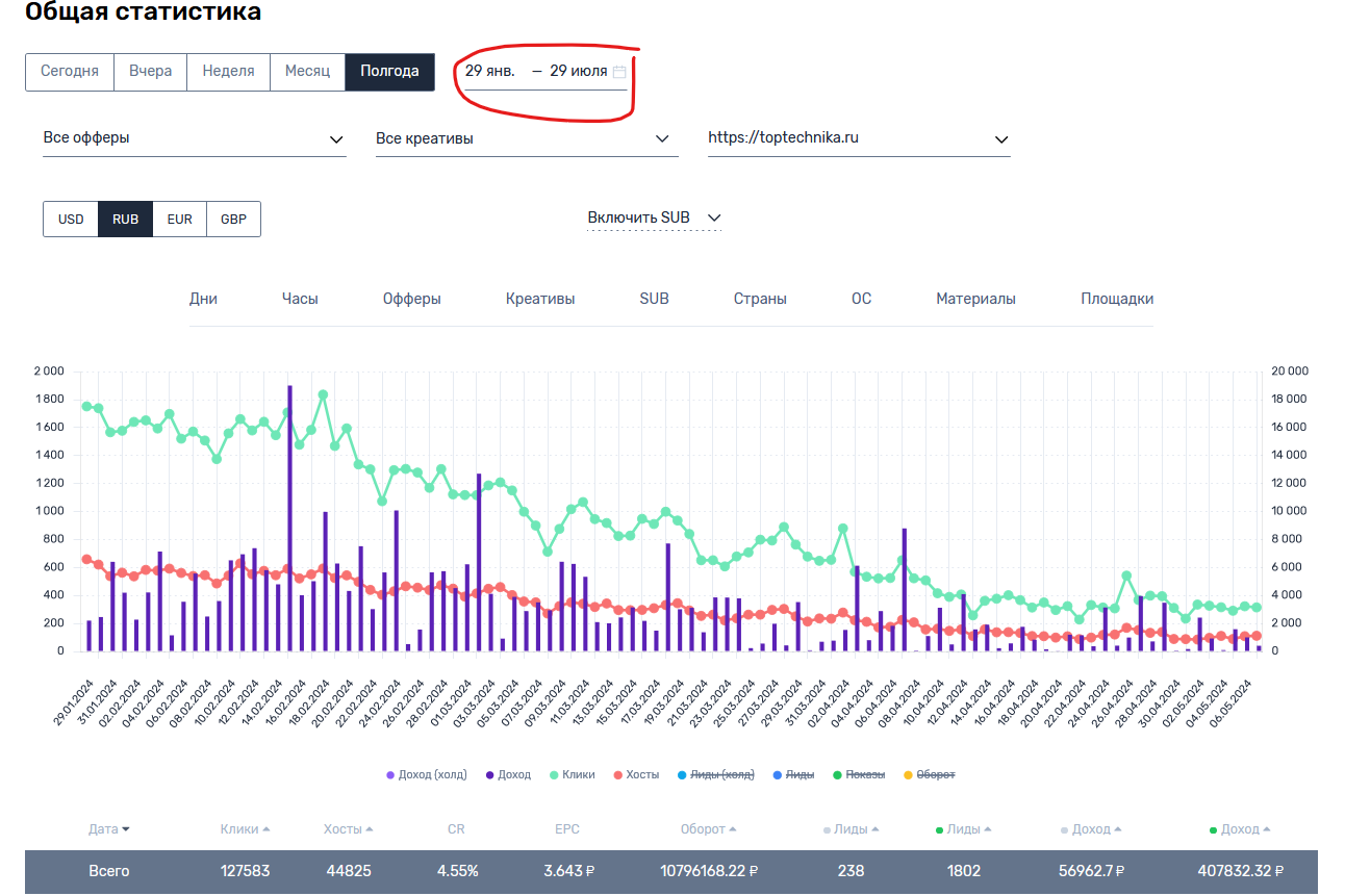 Через EPN с 29 января по 29 июля - 407 832 руб. (ставки там ниже на 25%, чем при работе напрямую).