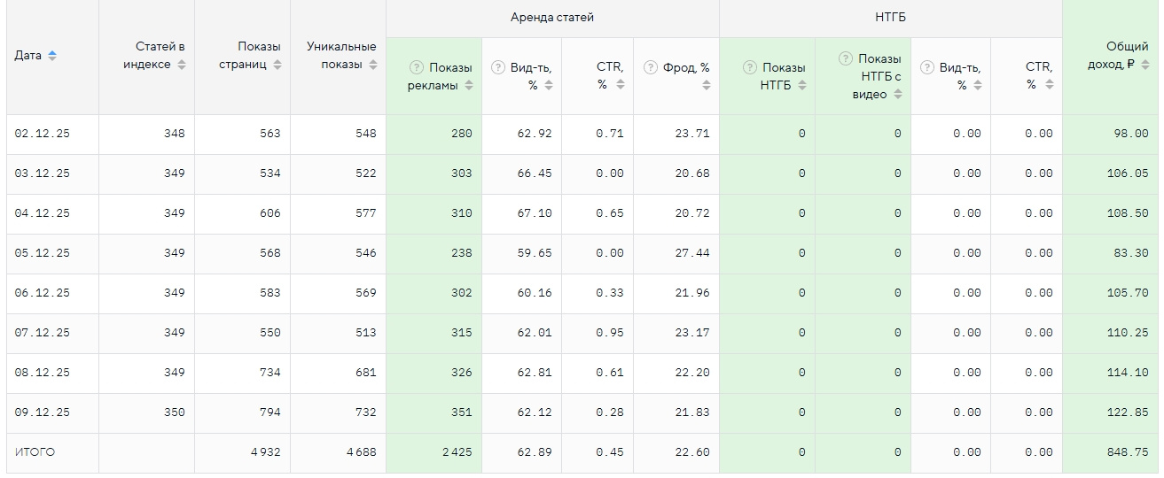 РСЯ блоки убрала, на данный момент на сайте использую монетизацию nativerent, блоки которого добавлены в конце сентября. Смотрите скрин.