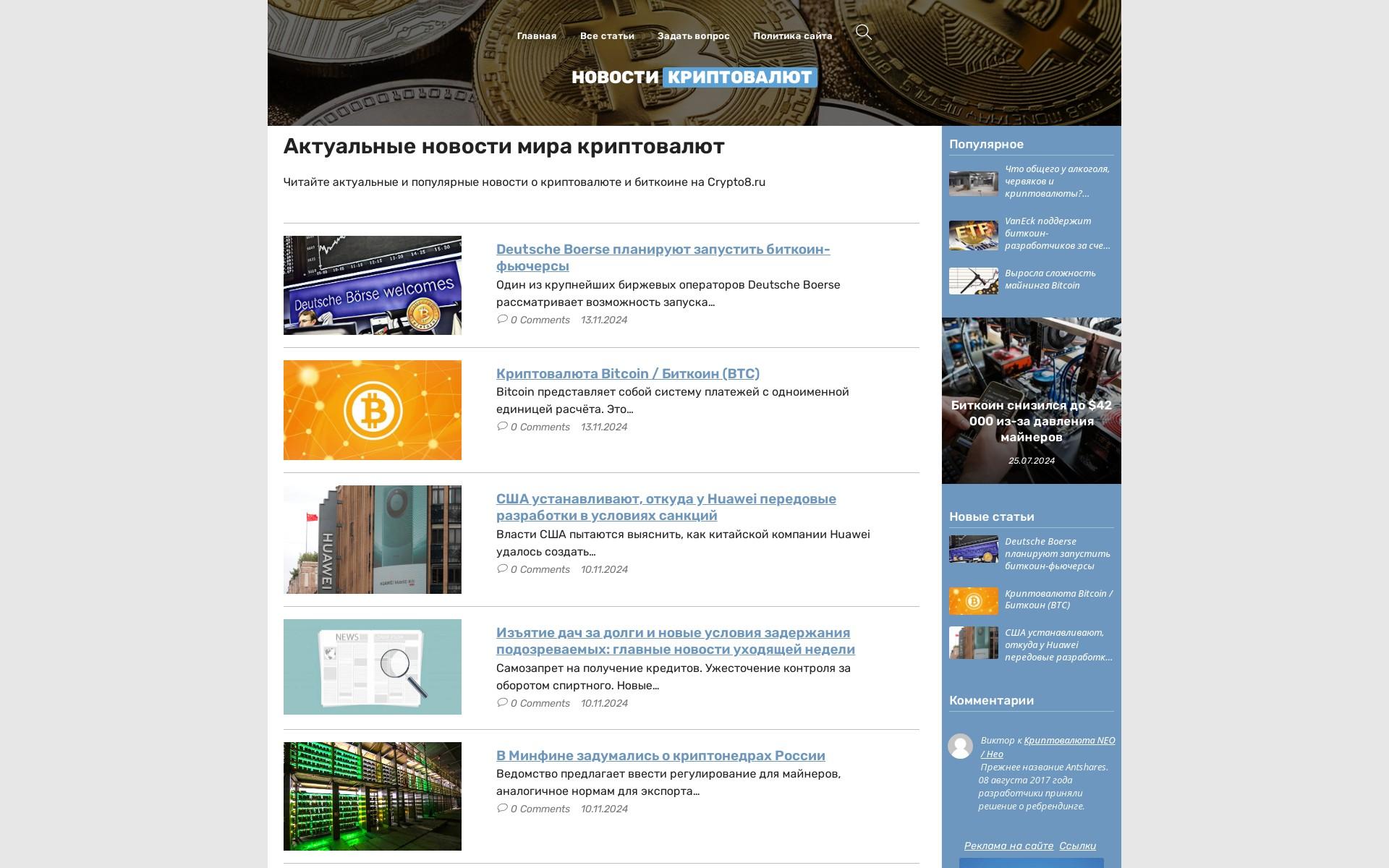 Новости криптовалют - СДЛ на Вордпресс (автонаполняемый)
