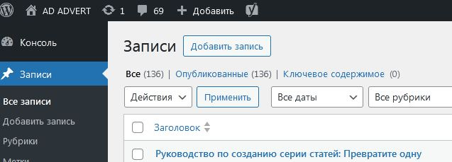 На сайте размещено и проиндексировано 136 статей (см. скриншот).