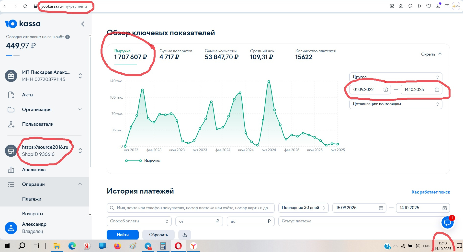 Скриншот из онлайн кассы прикрепил. Период с октября 2022 по октябрь 2025. Доход 1.7 млн.