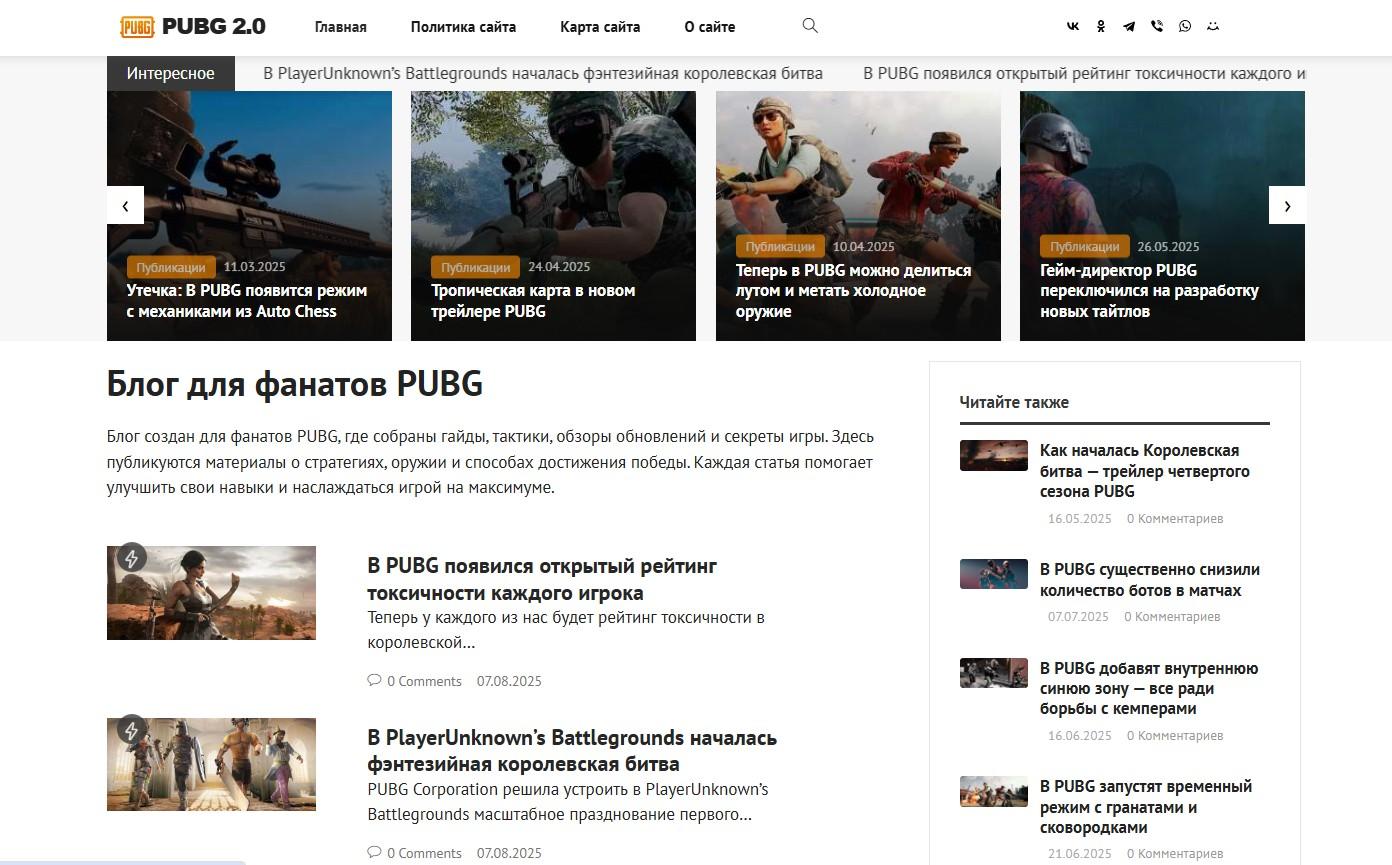 Сайт автонаполняемый с проверенных источников без всякого мусора - ссылок, кода, стилей и т.п. (wpgrabber) - cron на сервере, с сайта отключил для снижения нагрузки. (если не нужно автонаполнение - в один клик можно отключить).