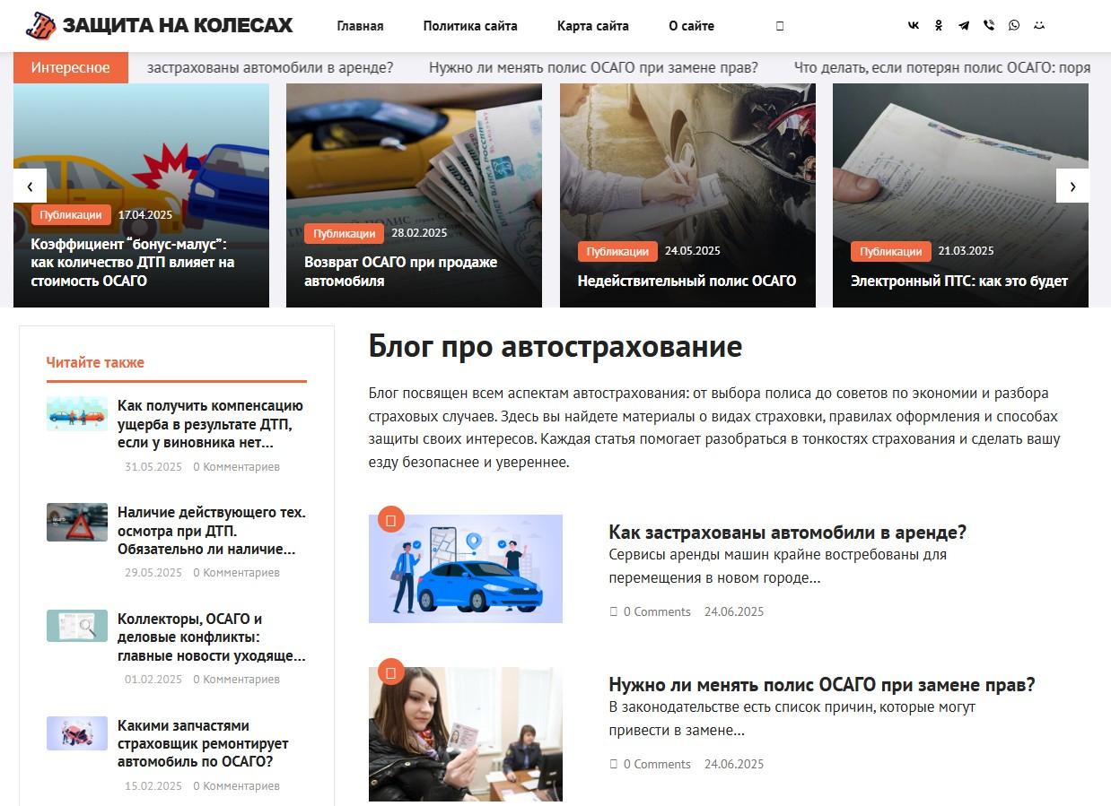 Блог о страховании авто +икс - СДЛ + автонаполнение + Добавлен в Gogetlinks, Miralinks