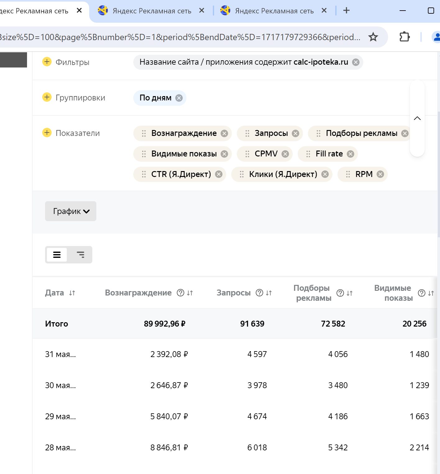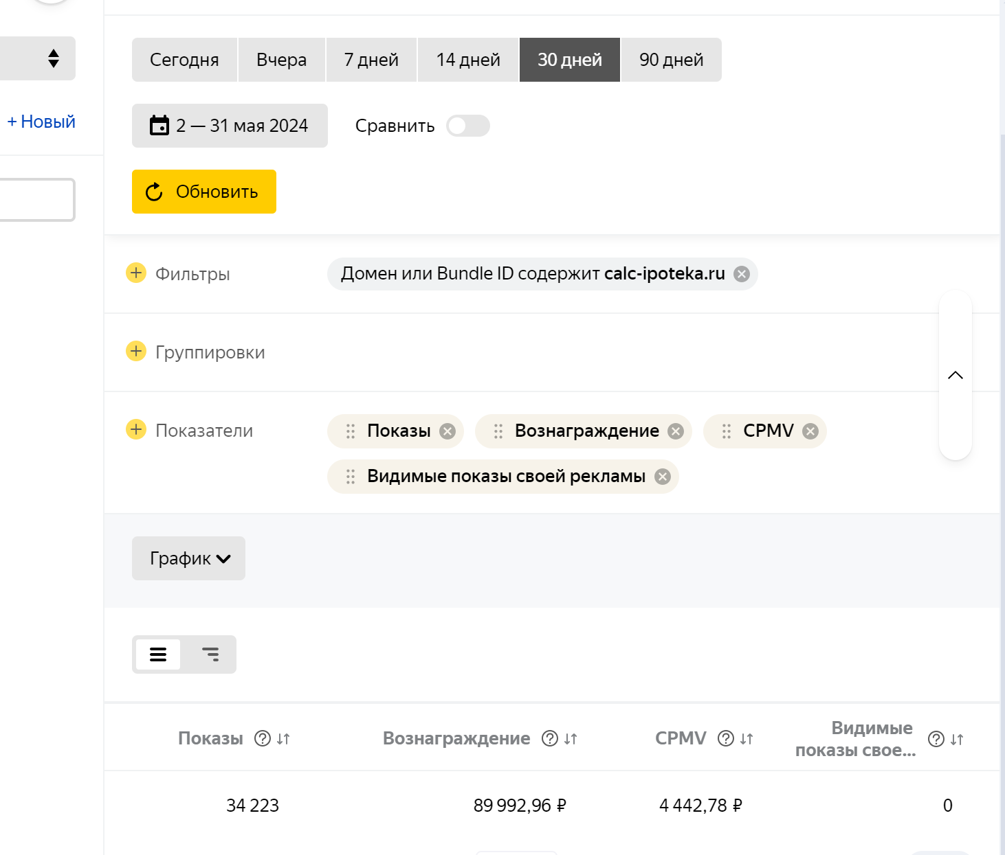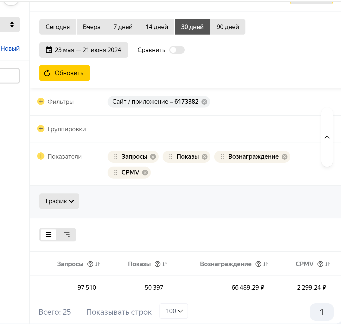 Достойный CPMV РСЯ. Реклама поставлена AdsPlace'r.