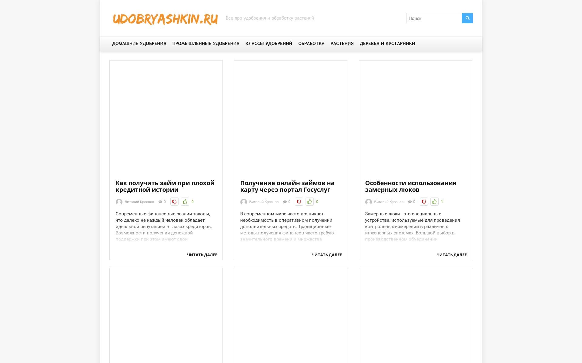 Сайт udobryashkin.ru о применении и методах внесения различных видов удобрений в сельском хозяйстве. Основная тематика сайта включает в себя подробные описания органических, азотных и органо-минеральных удобрений, их виды, преимущества и недостатки, а также инструкции по их правильному использованию. Сайт предоставляет ценную информацию о безопасности этих удобрений для грунта, растений и человека, что делает его незаменимым ресурсом для фермеров, садоводов и всех, кто занимается сельским хозяйством.