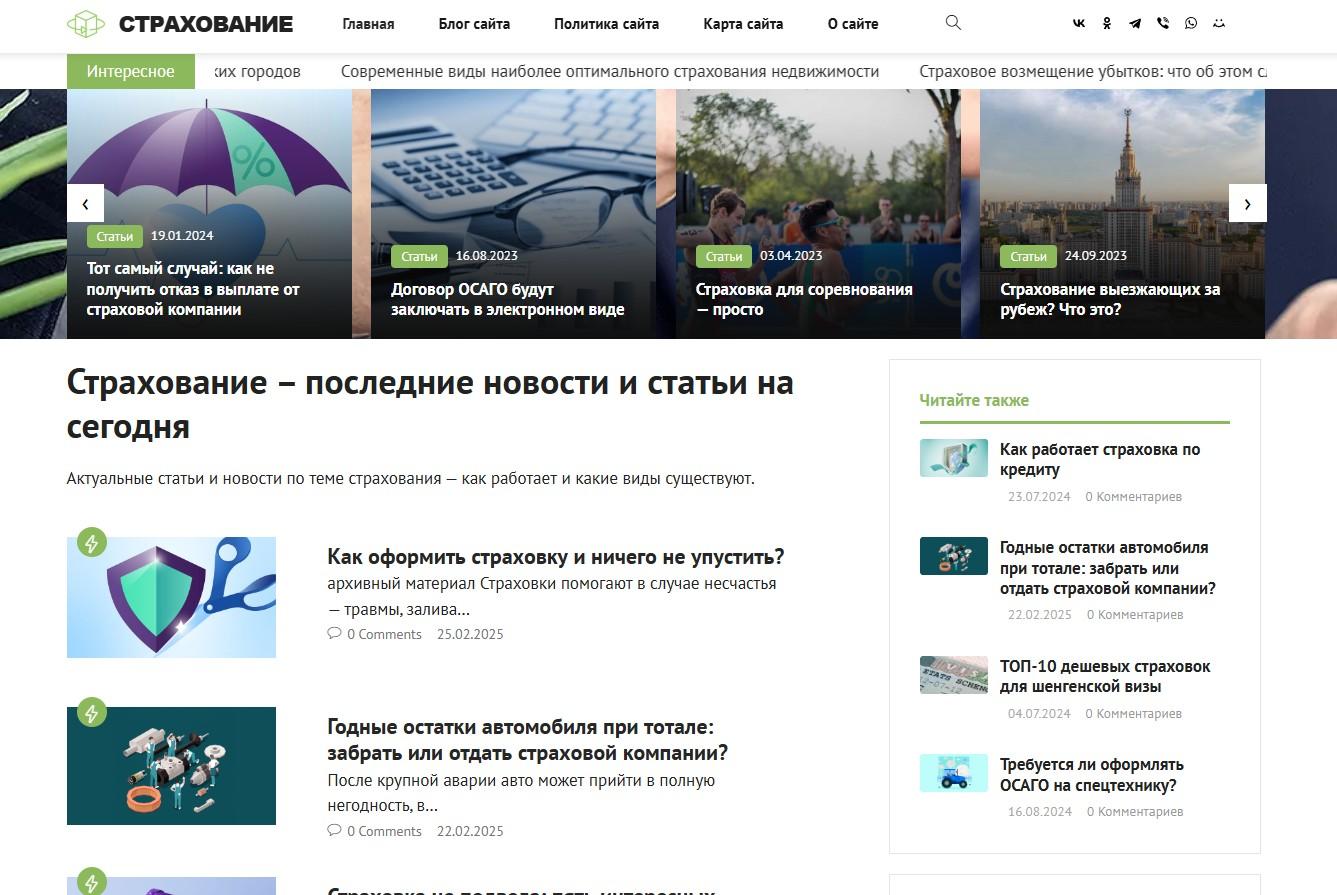 Блог по страхованию - блог СДЛ на Wordpress с автонаполнением - Design 2.0 + Добавлен в Miralinks