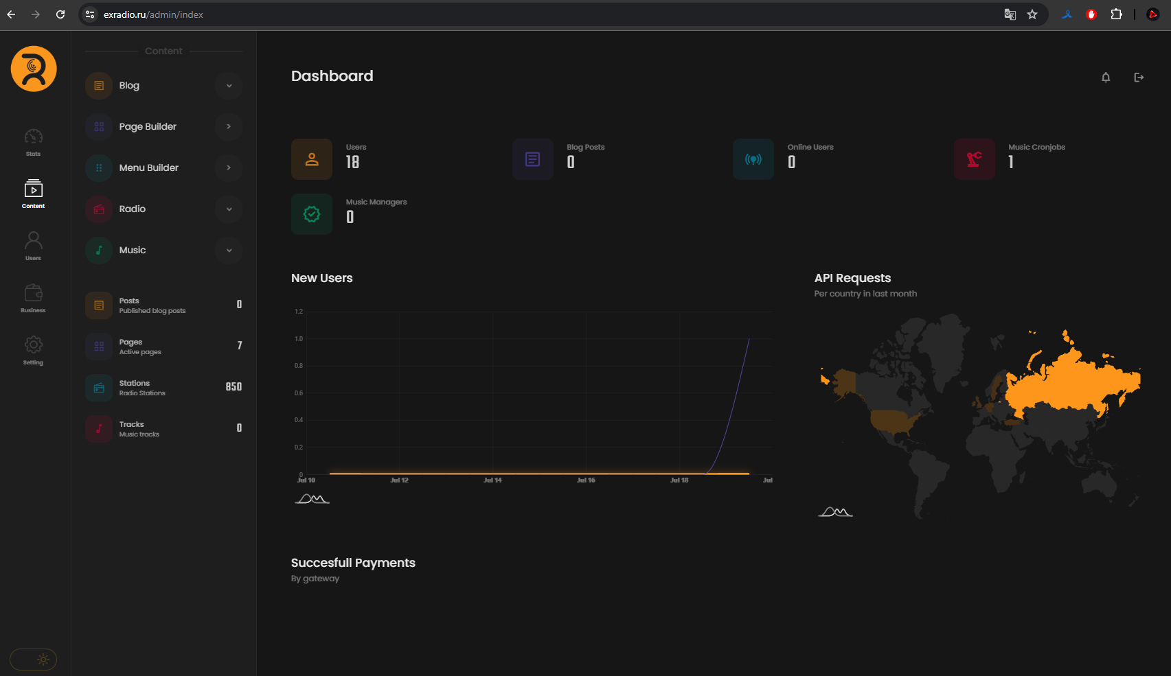 В данный момент на сайте 850 радиостанций, добавляю каждый день по 20-30 станции, на сайте хорошо реализованно сео оптимизация, красивый домен и удобство добавлять станции с админ панели, в общем по всем вопросам спрашивайте отвечу исключительно на всё по теме, плеер без перезагрузки страниц, реализация на jquery