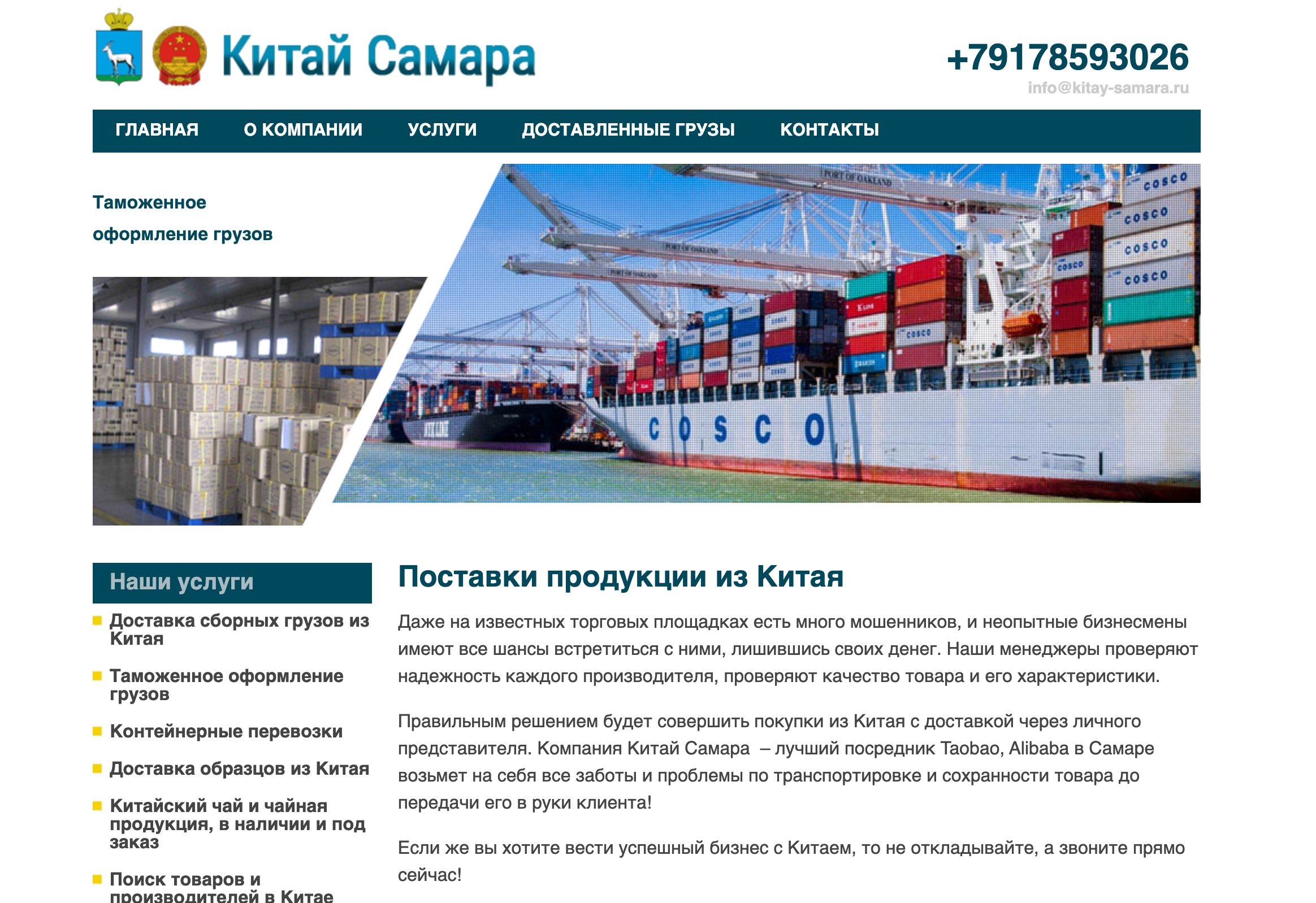 4 летний сайт - был создан в 2020 году. Компания занималась логистическими услугами карго из Китая. На данный момент компания не работает в Самаре, сайт им не нужен.