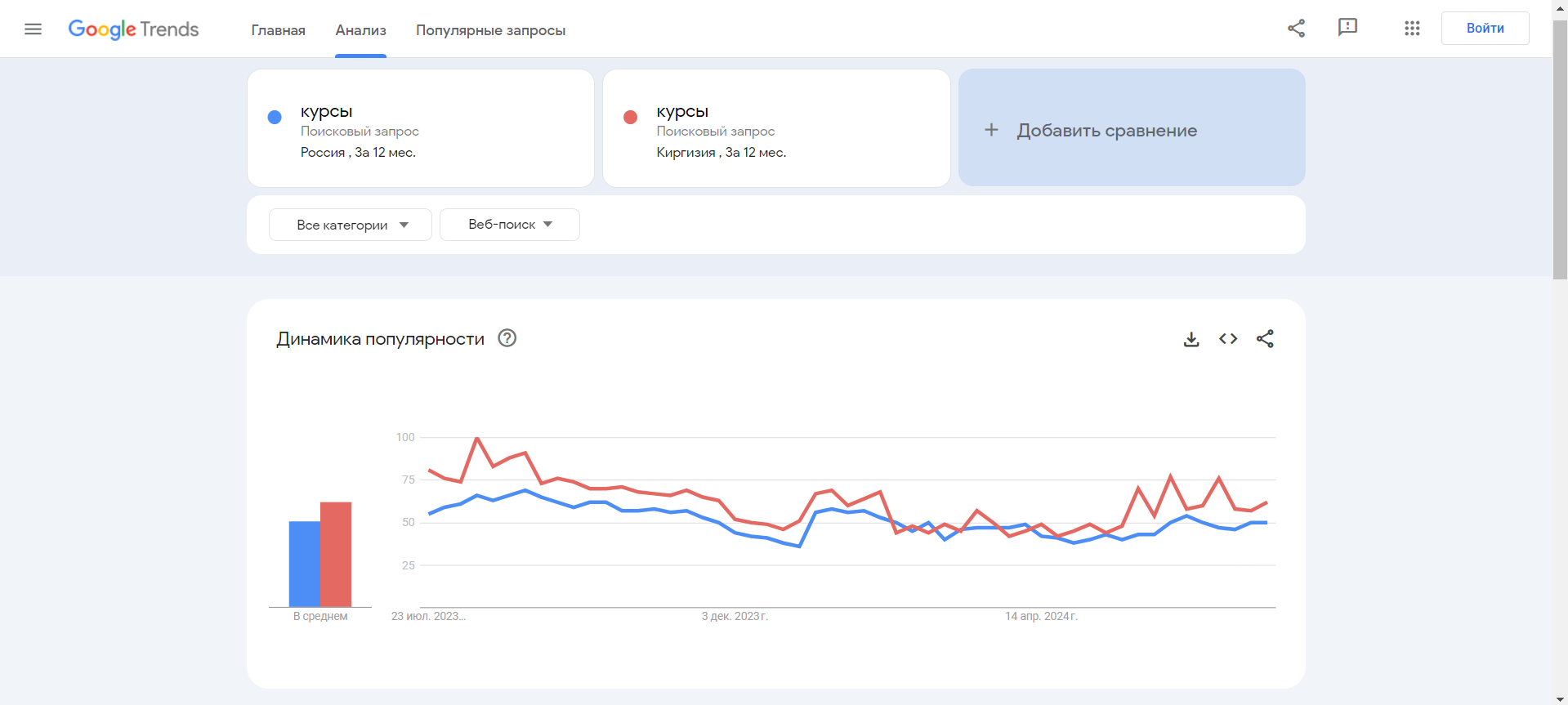 В Киргизии превалирует Google Поиск, если сравнивать с РФ, то количество запросов примерно одинаковые с Google, смотрите фото.