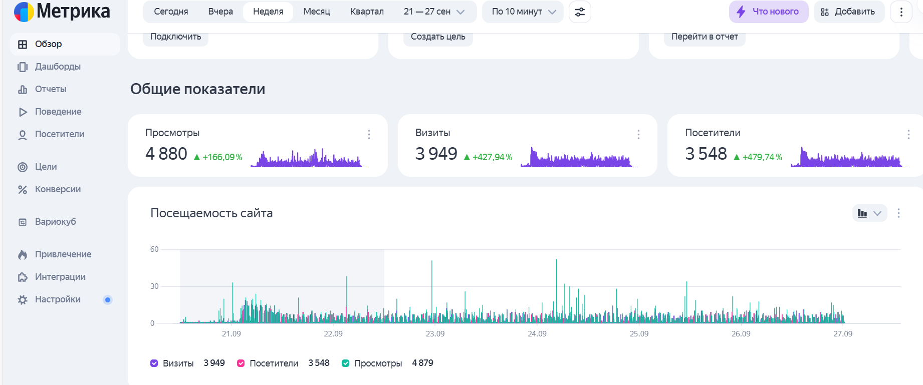 Яндекс метрику только запустил показывает неверную инфу так на сайте 50-700 посетителей в день