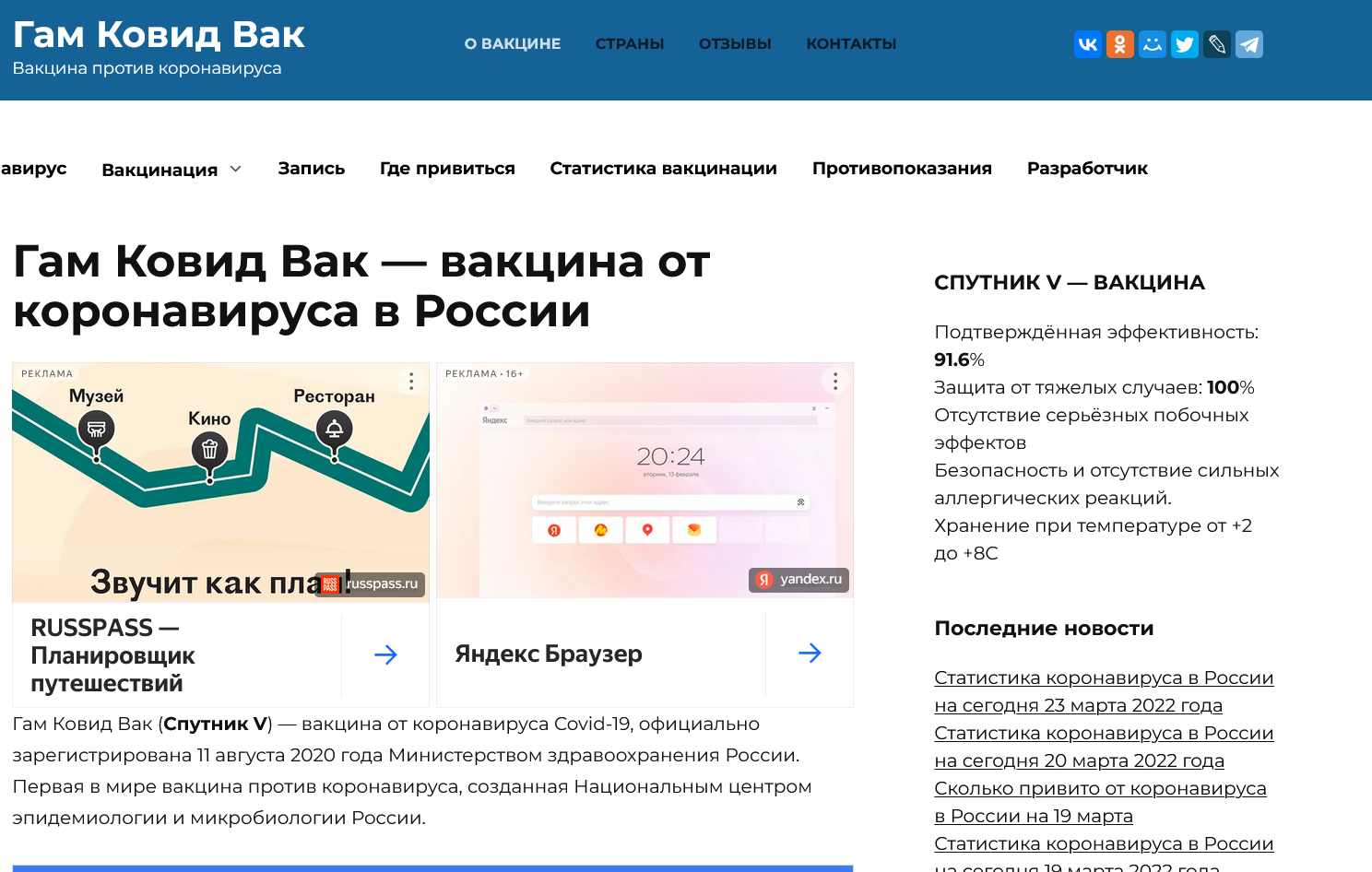 Вакцина против коронавируса, медицинский сайт на тему ковида.