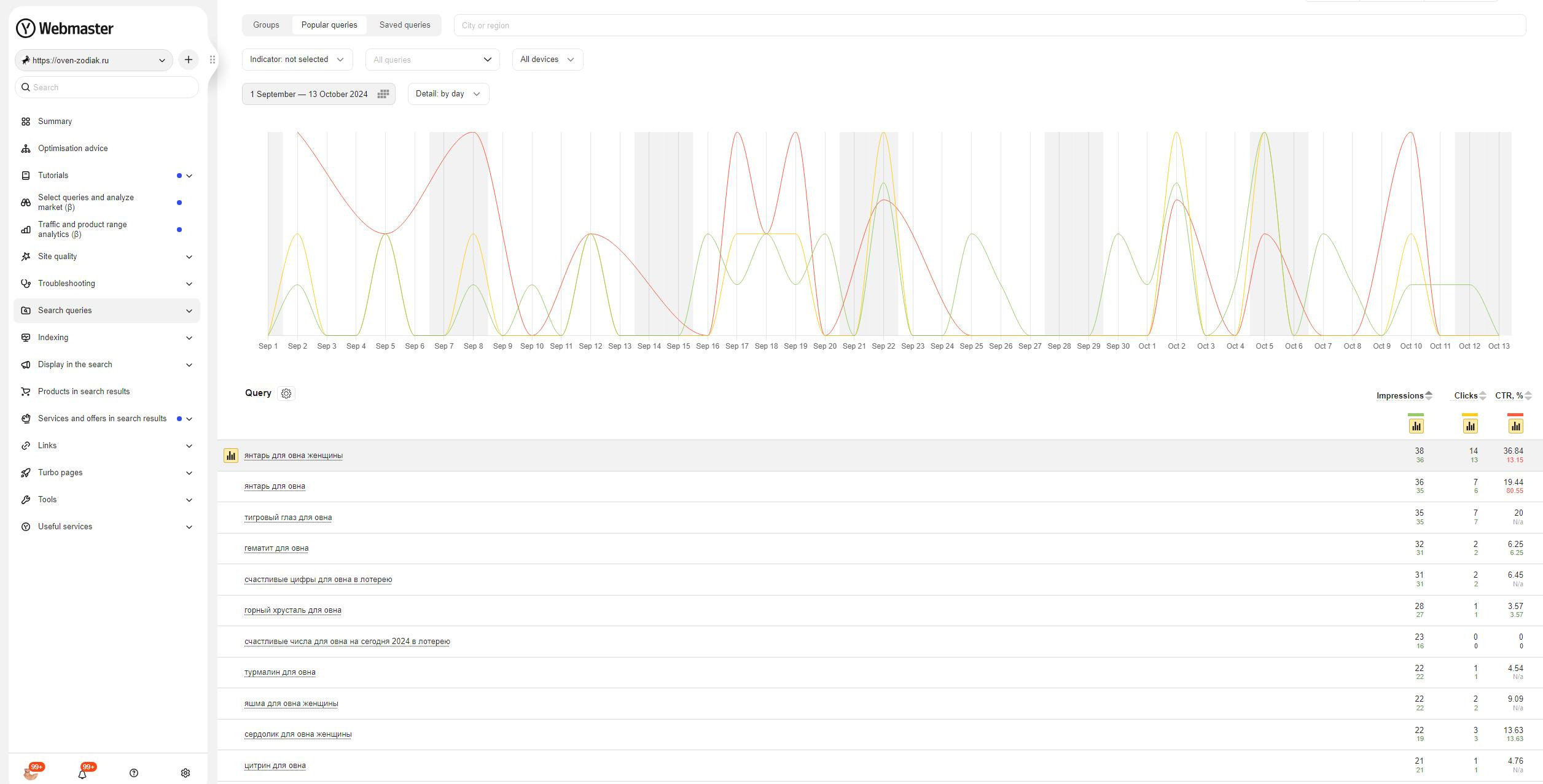 Текущая посещаемость около 500 уникальных посетителей в месяц. Примерно 2 месяца назад почему то выросла посещаемость по запросам связанным с янтарем (смотреть скриншоты). Возможно связано с тем что как раз в это время провел небольшую оптимизацию сайта - обновил плагины, почистил кеш