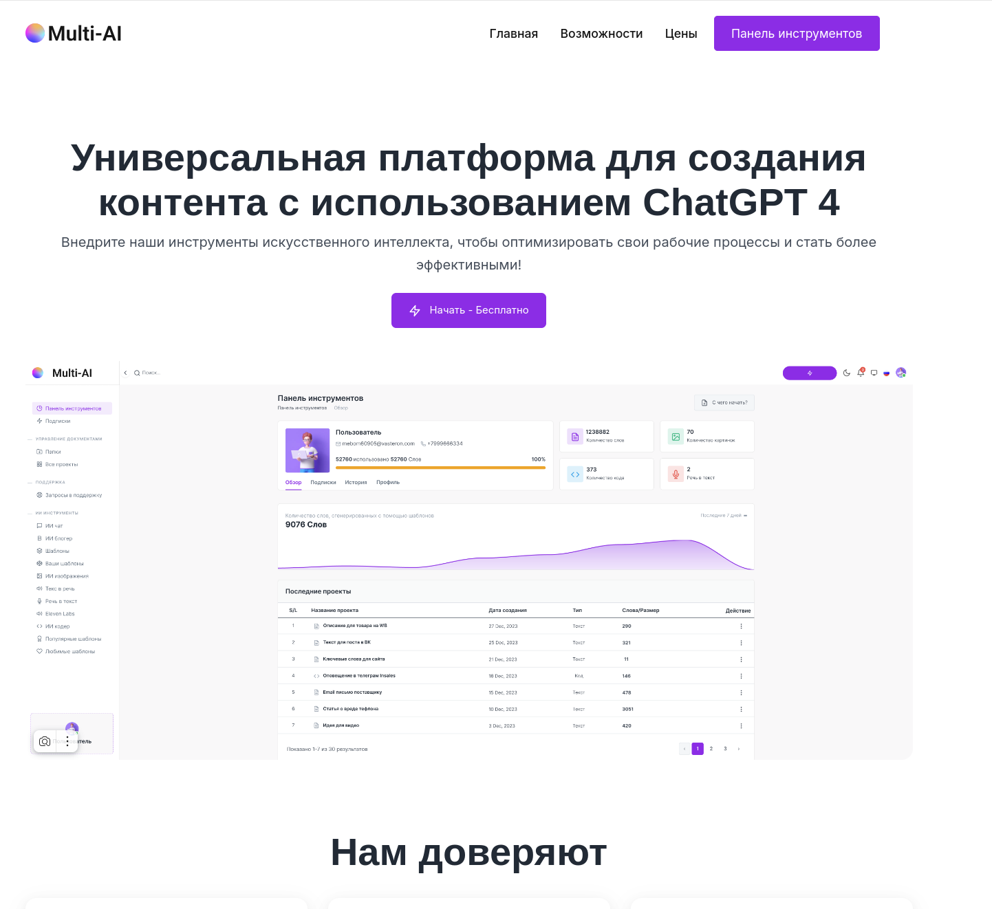 Продам платформу для создания контента с использованием OpenAI и Stable Diffusion.