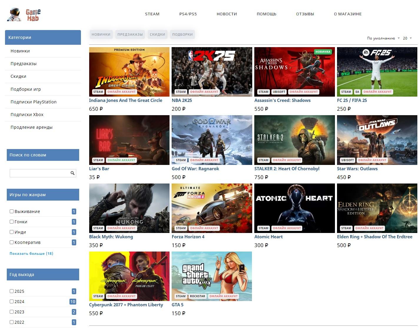 Сайт по офлайн активациям, аренде и продаже игр Steam\PS4\PS5