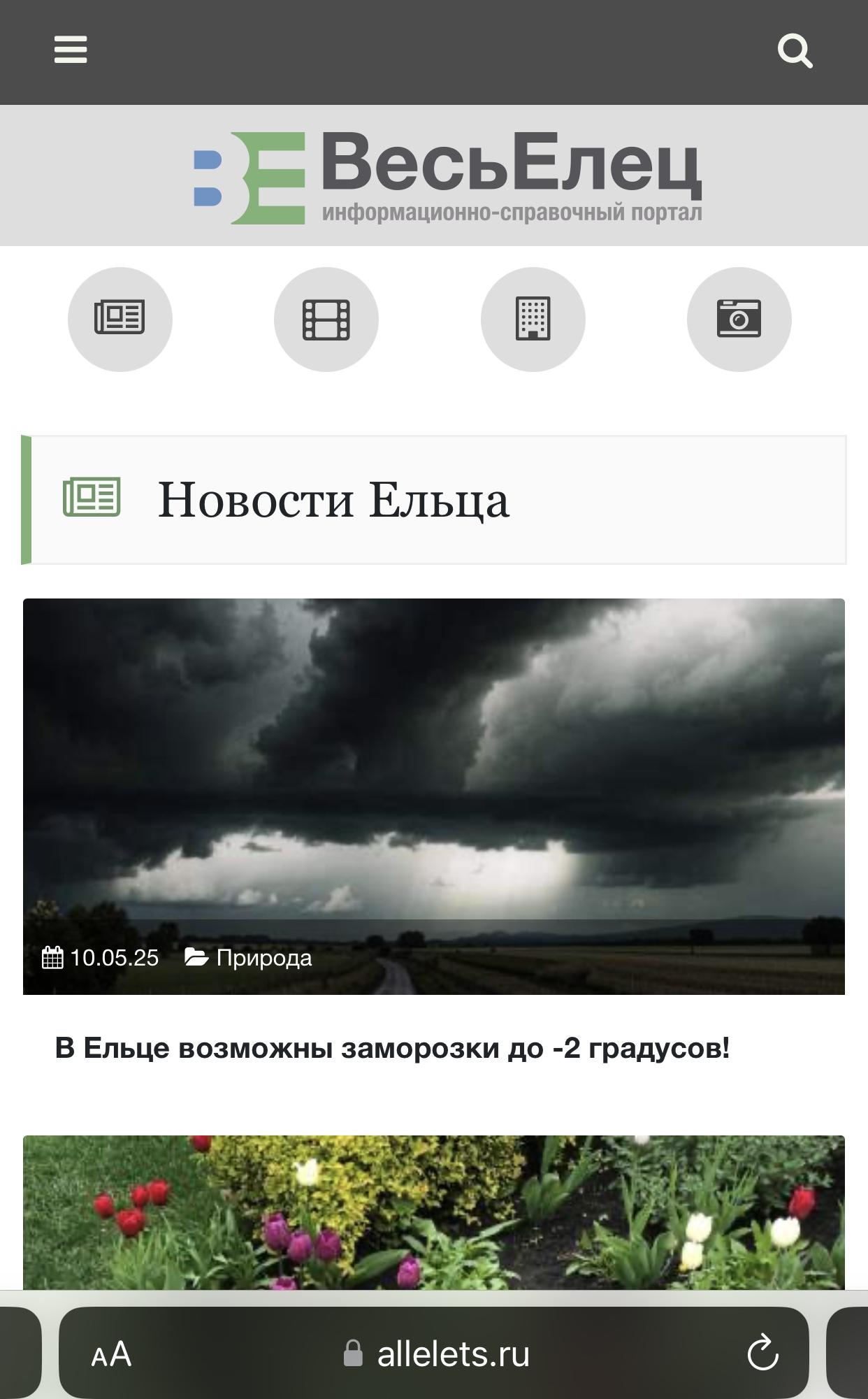 Продаётся уникальный городской новостной портал Весь Елец со старым доменом!