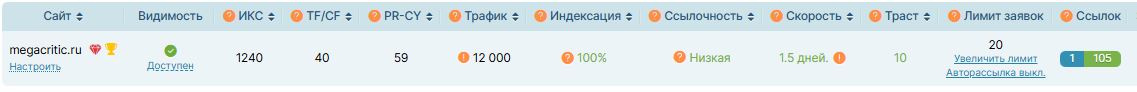 Мощный естественный ссылочный профиль TF/CF=38/37,