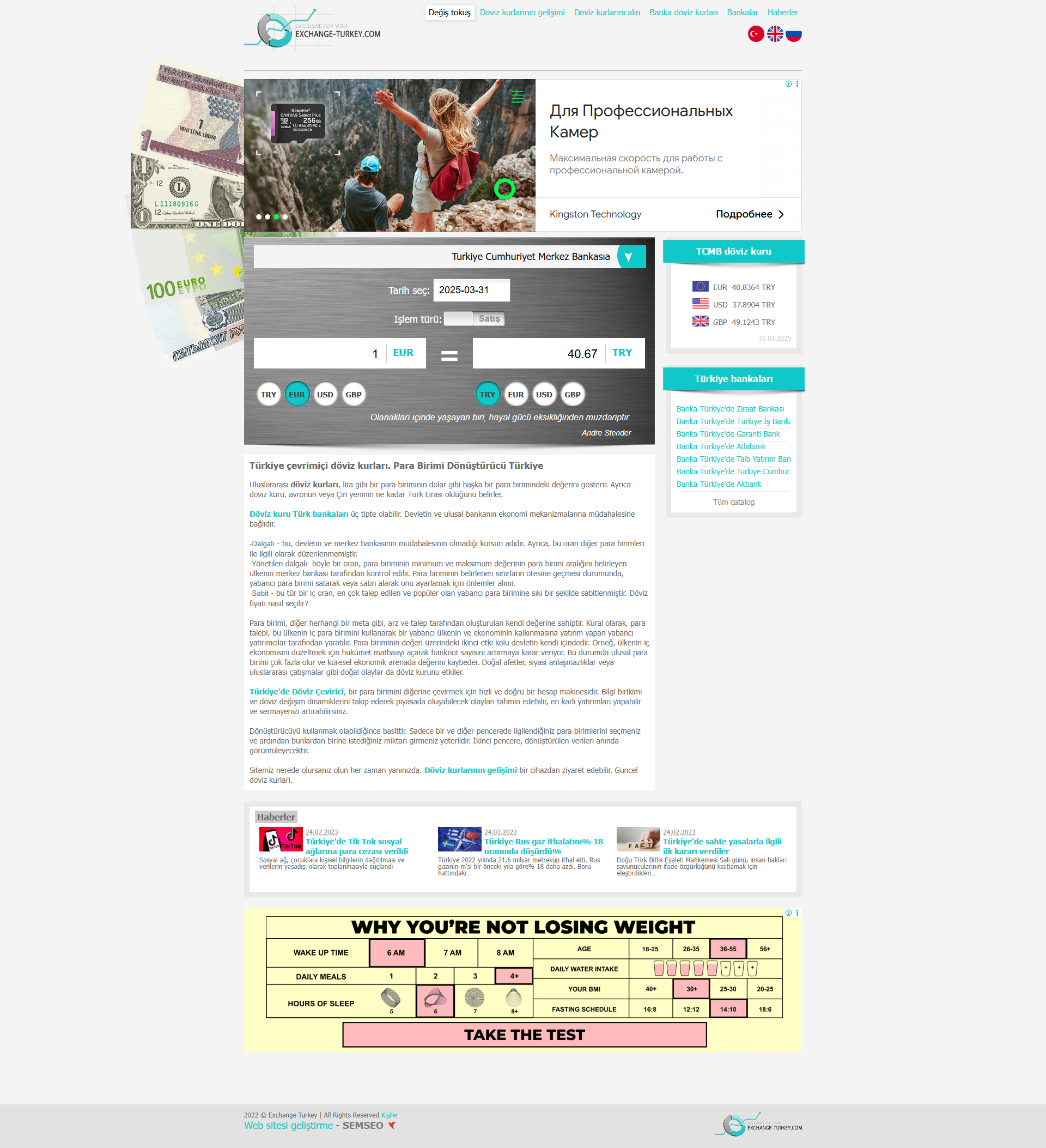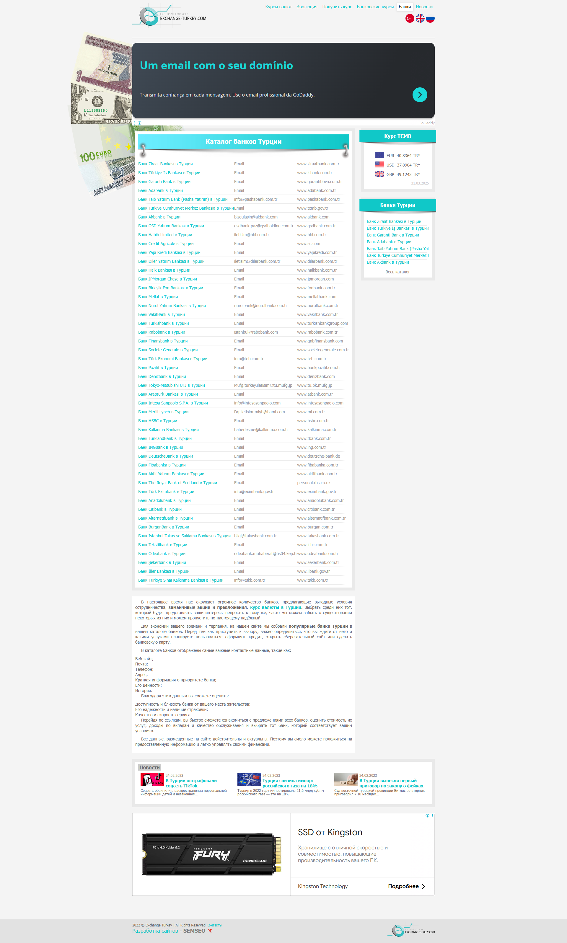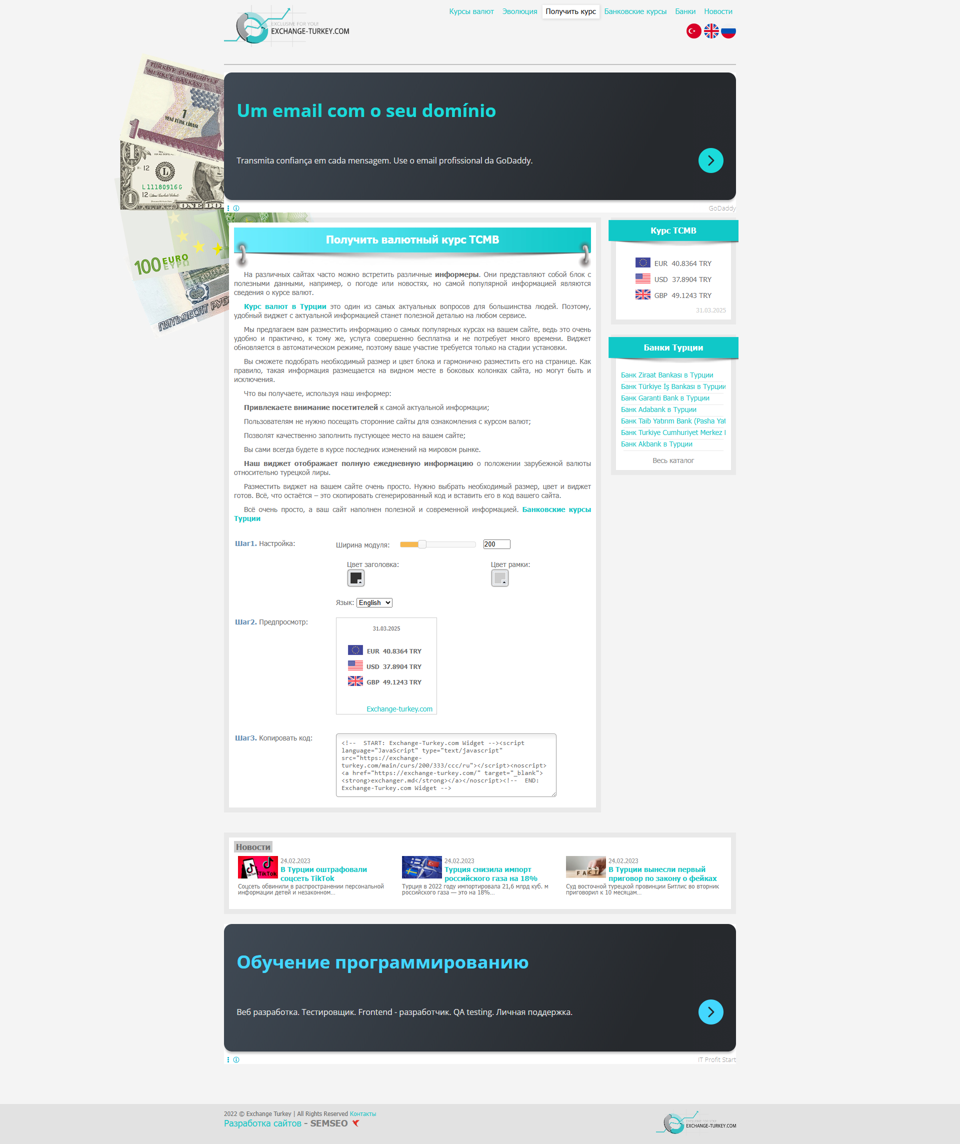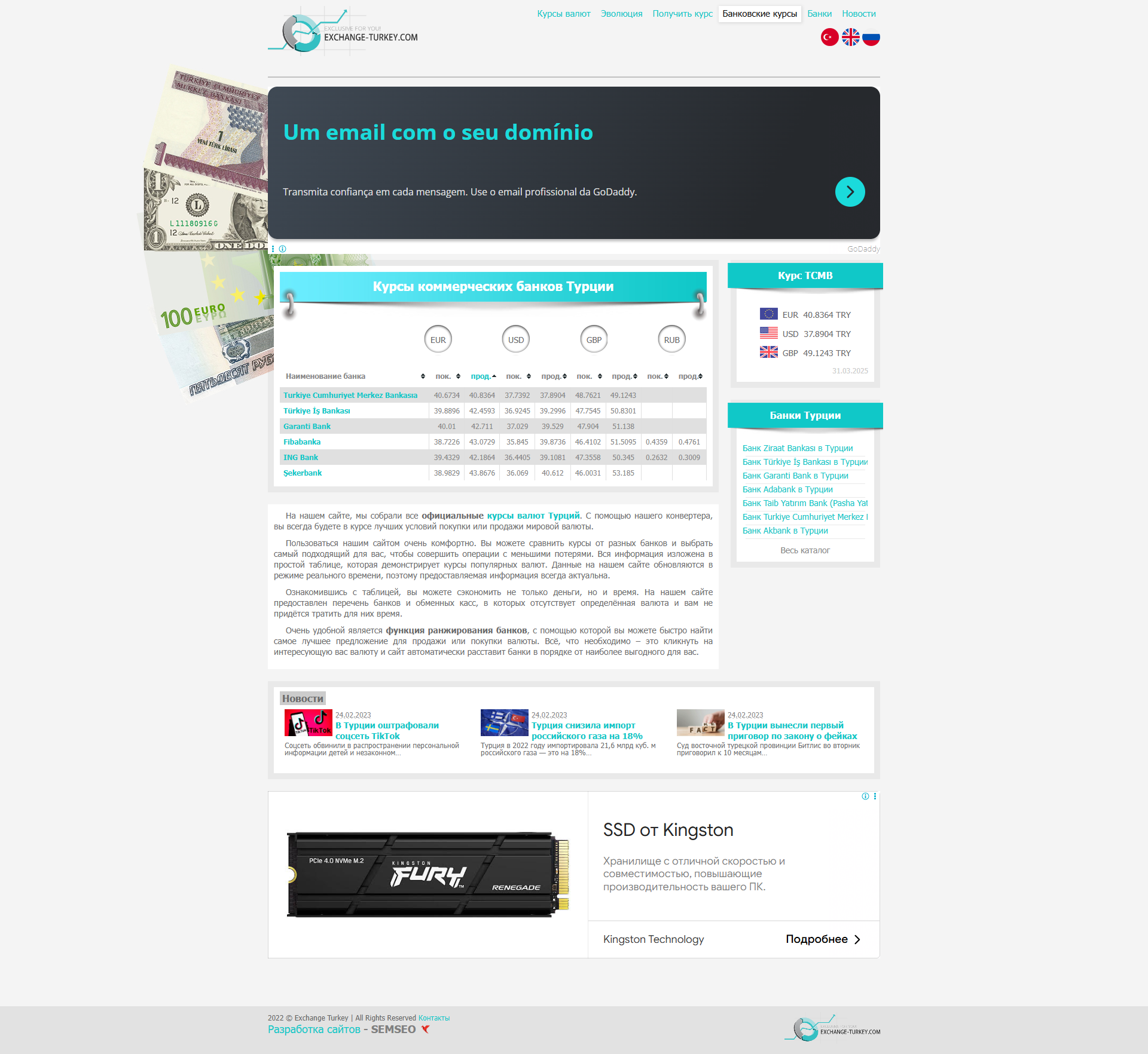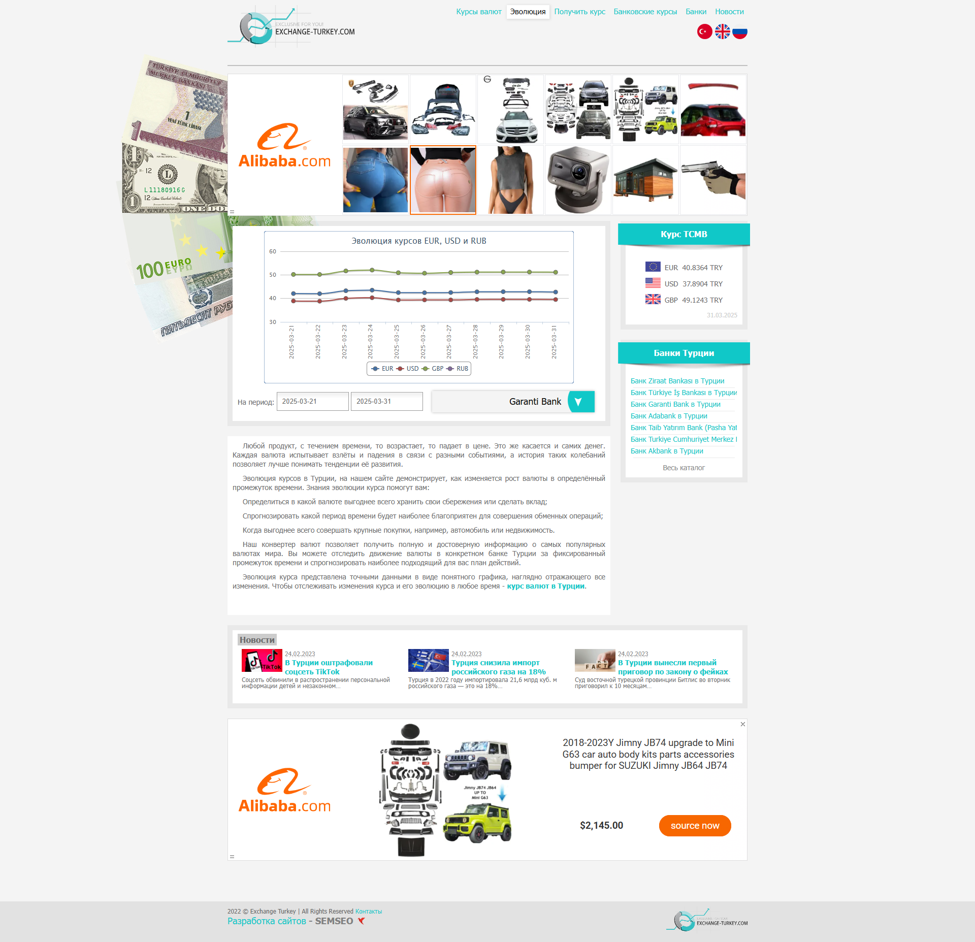 Этот сайт занимается темой валютных курсов в Турции, предоставляя актуальную информацию о курсах доллара и евро в различных банках страны. Его тематика сосредоточена вокруг валютных операций, что делает его привлекательным для целевой аудитории, состоящей из частных лиц и бизнеса, интересующихся обменом валюты, инвестициями или просто отслеживающих текущие валютные курсы.