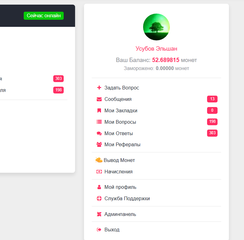 - Внутри движка целая система, поощрения авторов, модерация вопросов или ответов, личный баланс, вывод, ранг и много другого, аналог сайта bolshoyvopros.