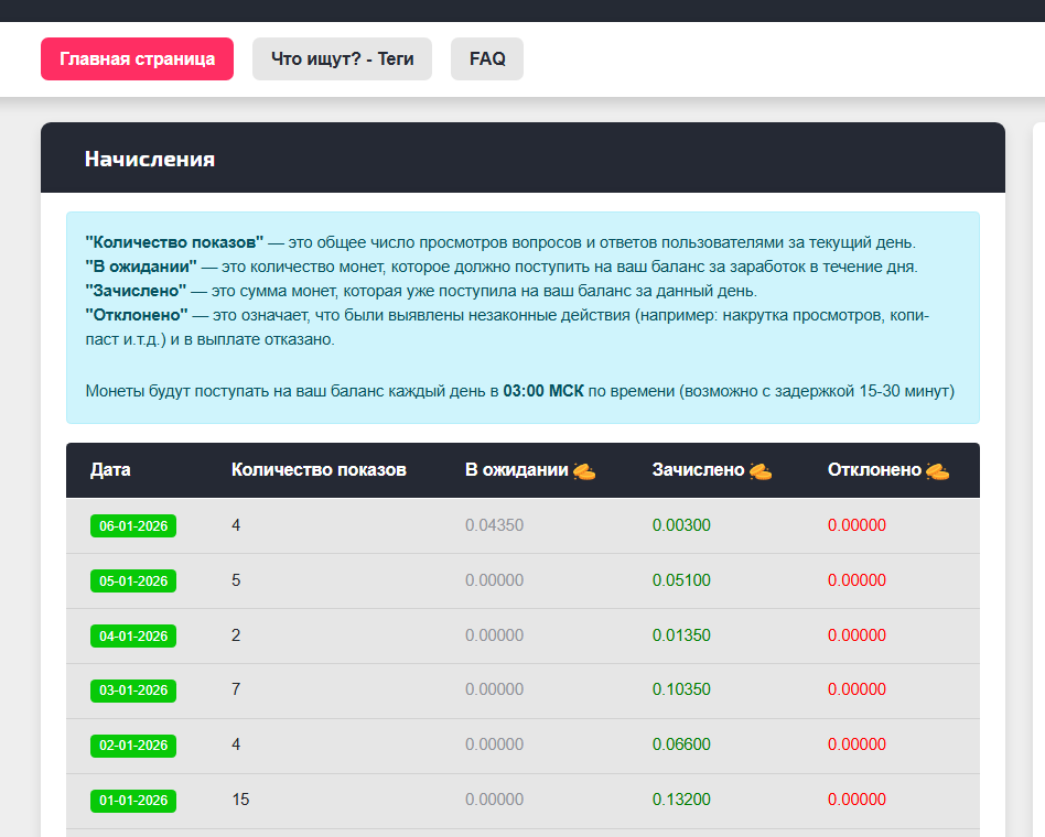 - Пользователь получает поощрение за показы свои вопросов, или ответов.
