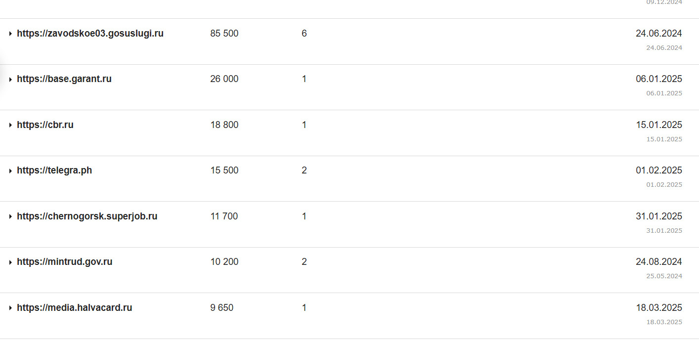 Продам один из топовых в своей тематике льгот и пособий сайт. Органический трафик, монетизируется аккуратно партнеркой Feedot (Правовед) и РСЯ. Потенциал роста большой - у сайта очень трастовый домен с ИКС 170 (это выше всех конкурентов в нише), никогда не было санкций, супер-качественная внешняя ссылочная масса - есть ссылки с Госуслуг, Центробанка, сайта Минтруда (см. скрины).