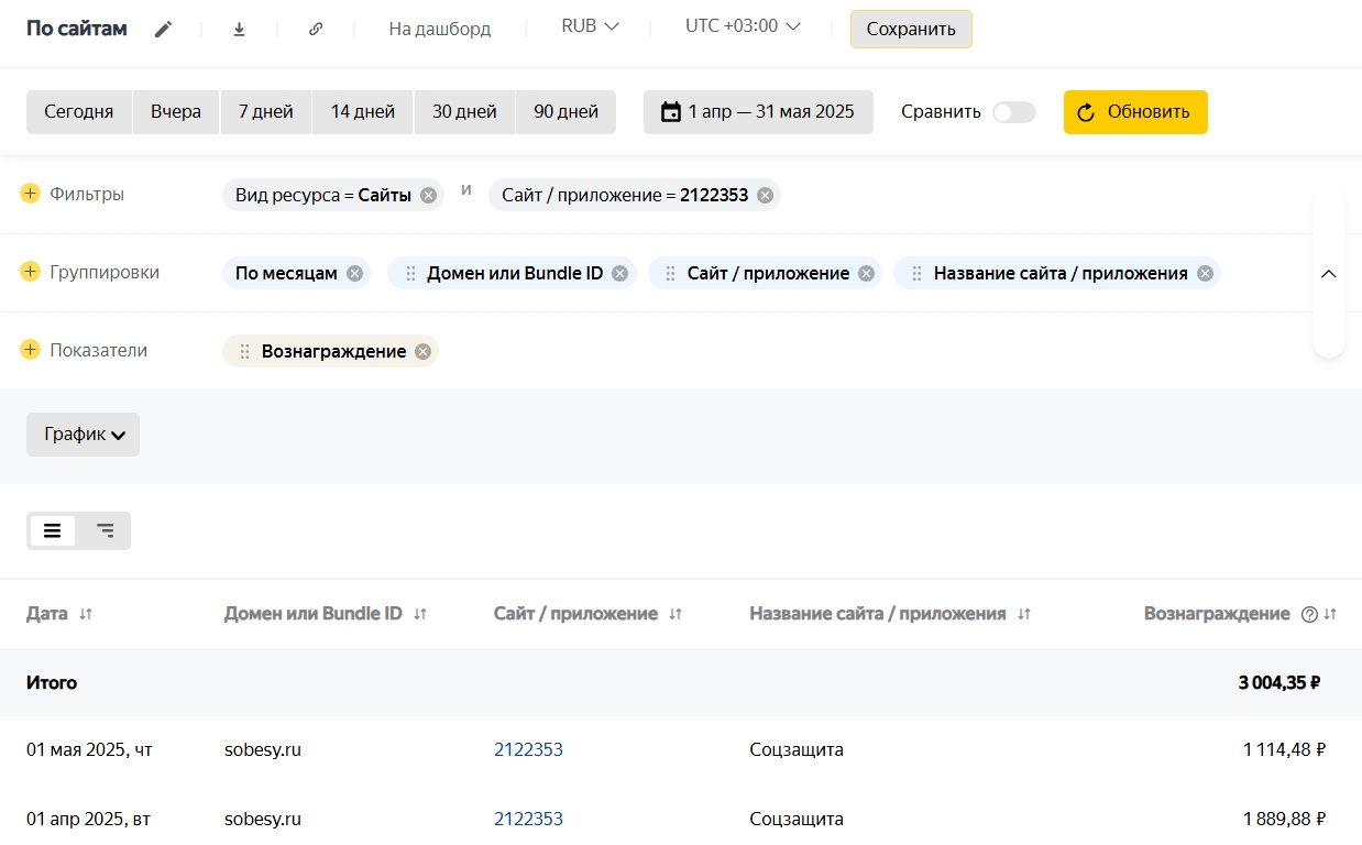 2) Тестирование РСЯ - я просто расставил блоки и забыл, наверняка есть потенциал улучшения (из РСЯ в среднем 1500 руб./месяц сейчас)