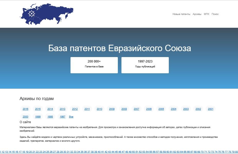 Представляем к продаже уникальный проект — официальная база патентов Евразийского экономического союза с архивом публикаций с 1997 года. На сайте размещены подробные описания изобретений, данные об авторах, чертежи, юридически значимая информация и классификация по Международной патентной классификации (МПК). Поиск по более чем 200 000 патентным документам делает ресурс незаменимым для юристов, патентных поверенных, изобретателей, научных сотрудников и компаний, работающих с интеллектуальной собственностью. Благодаря актуальным обновлениям и полному охвату архивов сайт отвечает самым строгим требованиям профессионалов, а также помогает студентам и всем, кто интересуется инновациями и научно-техническим прогрессом.