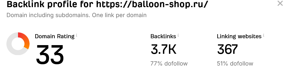 Интернет магазин гелиевых шаров и прочих шаров. Хороший архив, трафик , шикарные показатели DR доноров, CF TF
