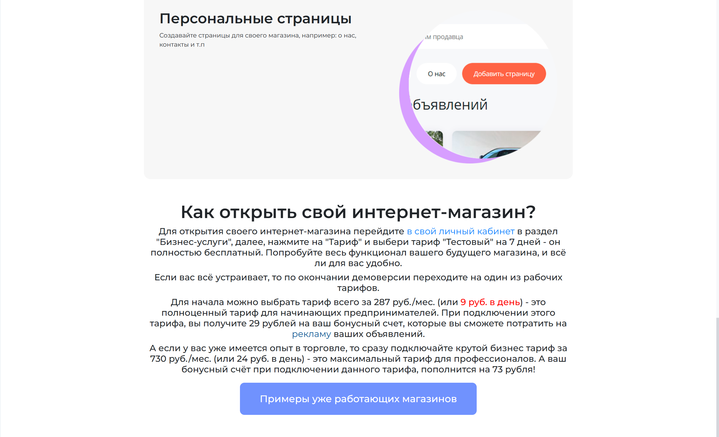 - Онлайн-магазины. Каждый пользователь сможет создать из своего профиля - магазин с полноценным каталогом объявлений, персональными страницами и промо слайдером. А вы будете получать абонентскую плату каждый месяц.