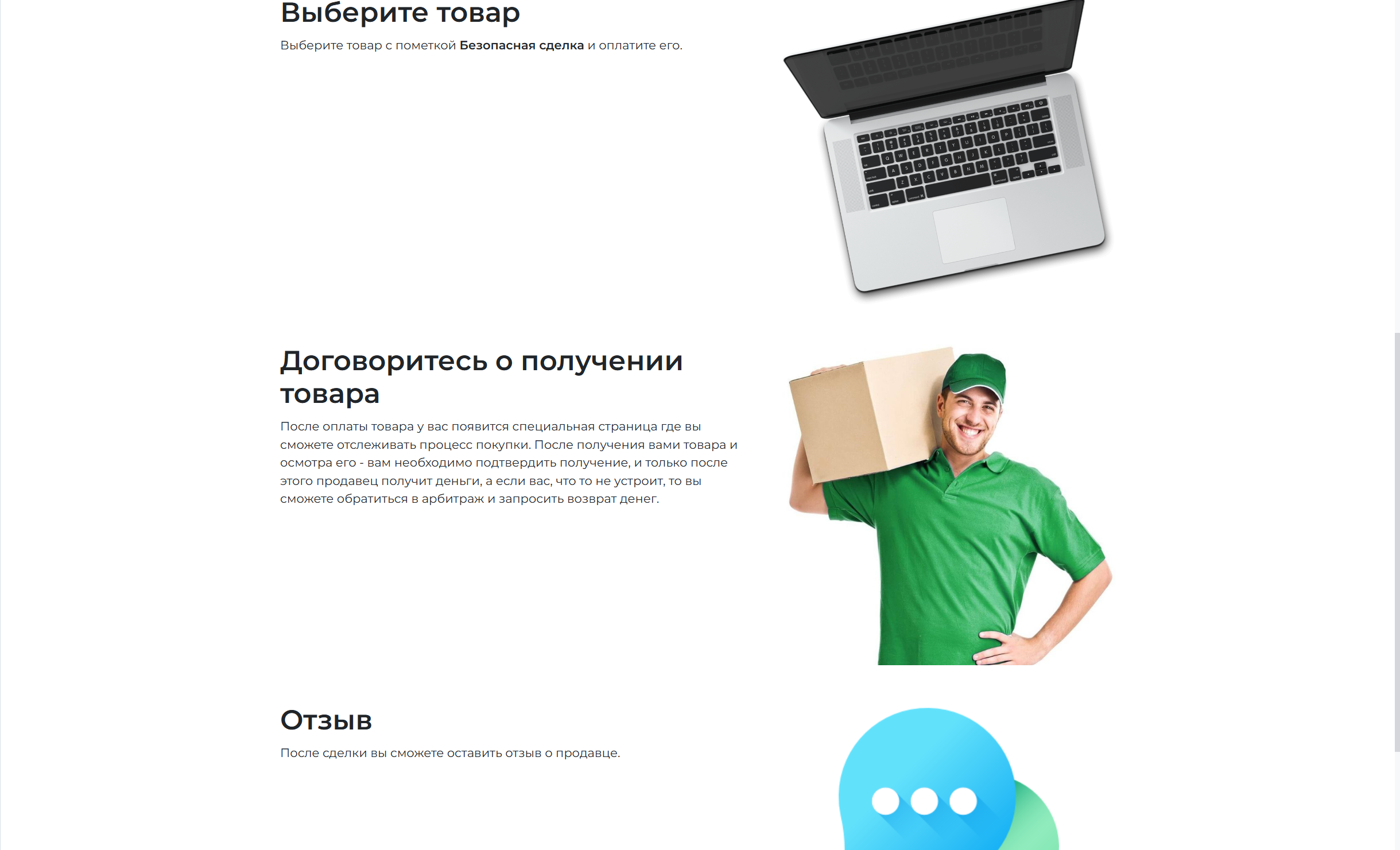 - Наполнение сайта объявлениями было произведено вручную, каждое объявление было проверено на наличие ссылок на запрещенные сайты, размещённые объявления не содержат запрещённых к обороту товаров и веществ, и не нарушают законов РФ.
