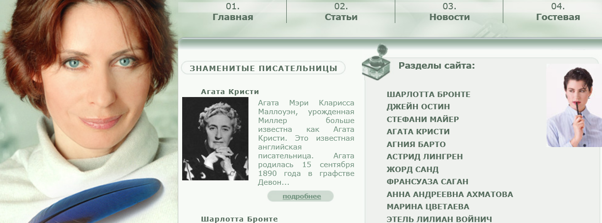 Сайт писательницы, на сайте много разных статей, текста на тему культуры