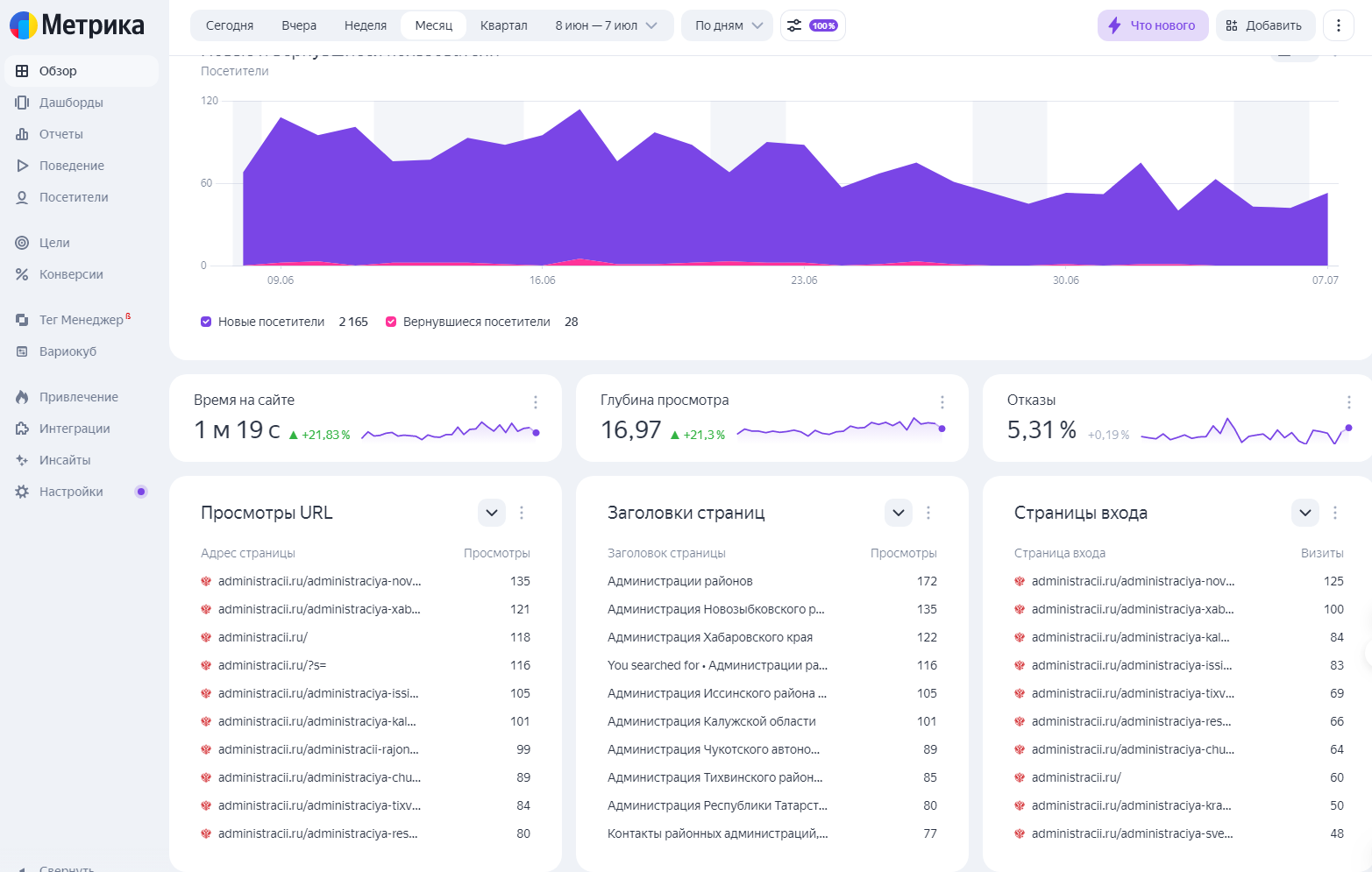Администрации субъектов Российской Федерации. Стабильный ручеёк органического трафика. Куда направить развитие — решать будущему владельцу. Немного освежить семантику и обновить странички и трафик вырастет кратно.
