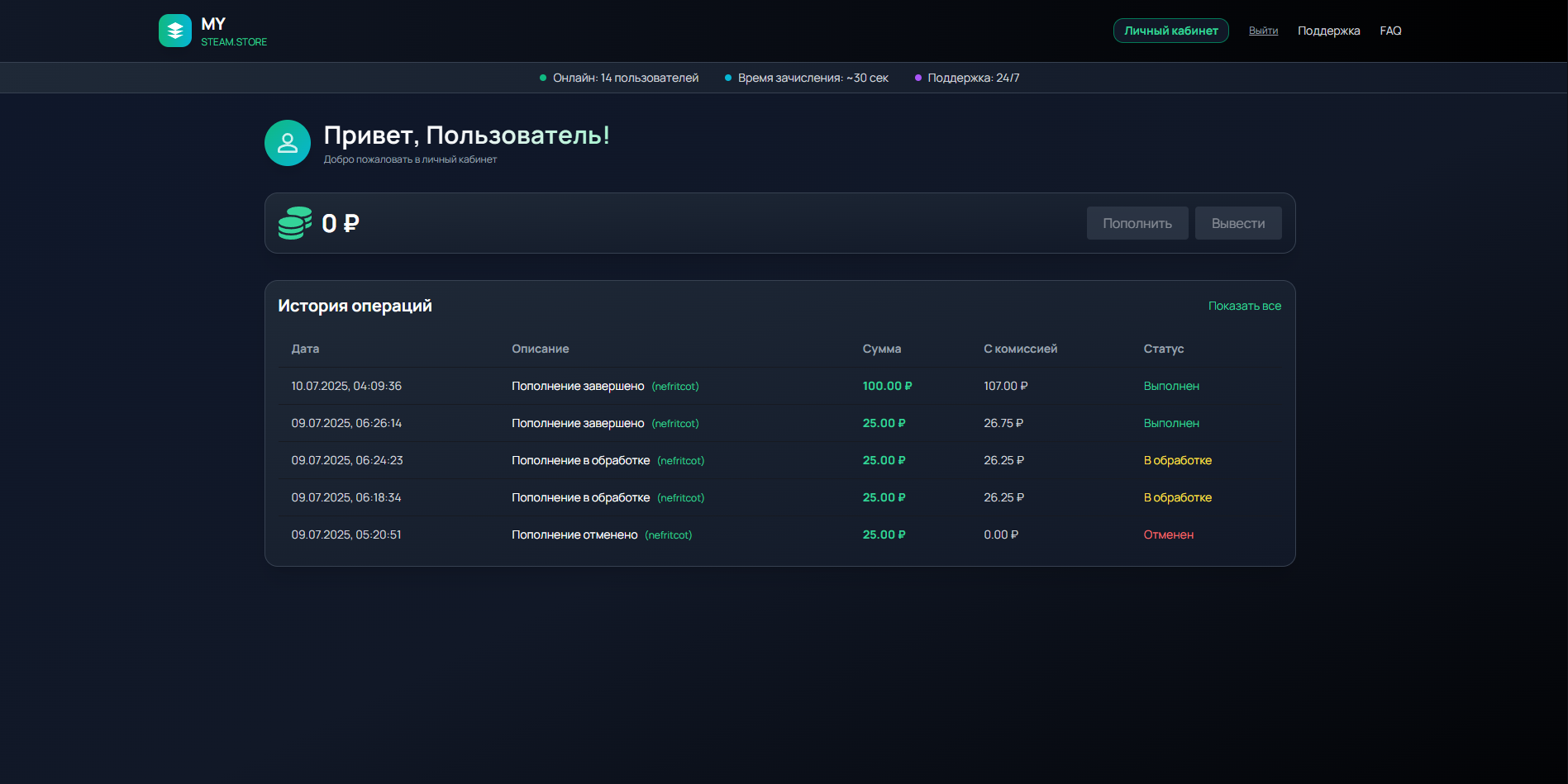 Полностью рабочий веб-сервис для продажи пополнений Steam через API (подключенный сервис уточню в ЛС. В сервисе есть современная панель управления промокодами, статистика, служба поддержки, настройка комиссии итд). Проект создавался для продажи — есть потенциал для монетизации при запуске рекламы.
