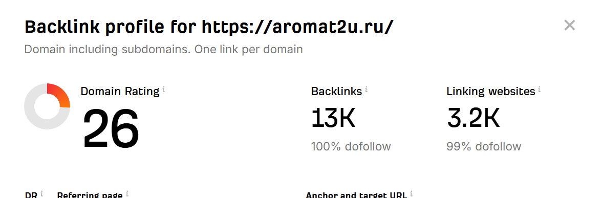 DR 26 . Доноров 3400 99% Dofollow. Есть трафик.