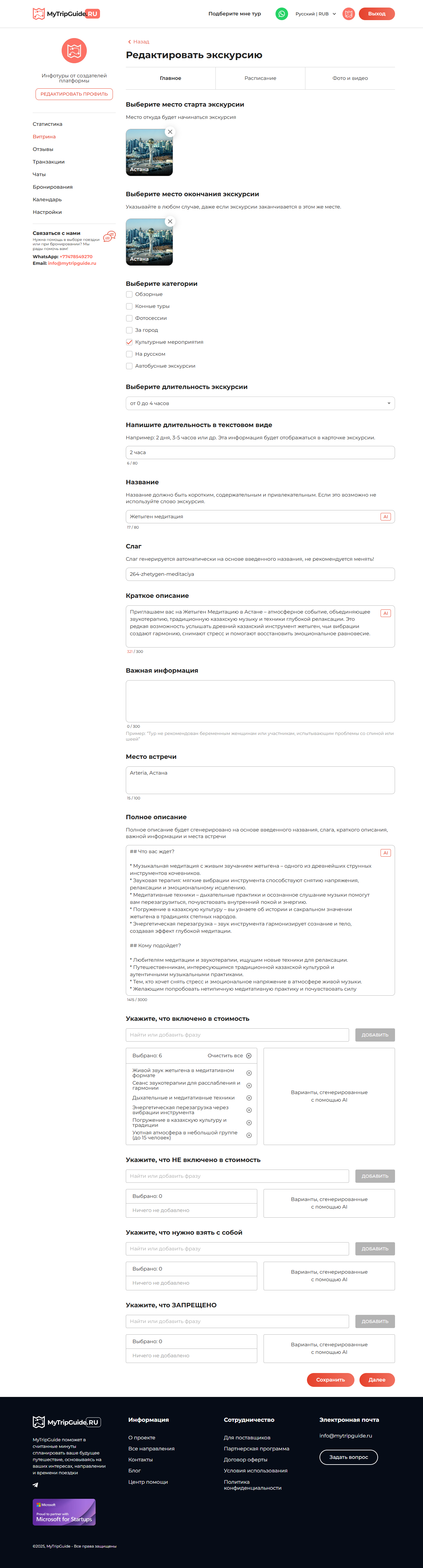 Контент сайта включает авторские экскурсии, туристические маршруты, отзывы пользователей, а также вдохновляющие статьи и полезные советы в блоге, что положительно влияет на поисковое продвижение благодаря уникальности и релевантности материалов.
