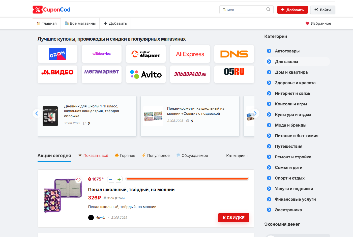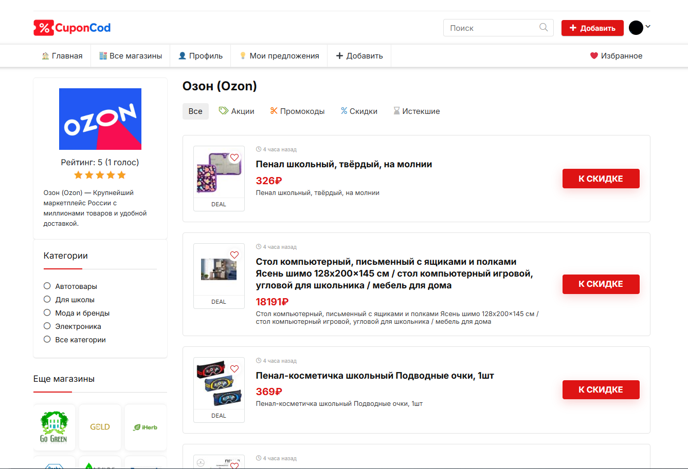 Продаётся готовый сайт CuponCod – действующий проект в нише купонов, скидок и промокодов для популярных интернет-магазинов.