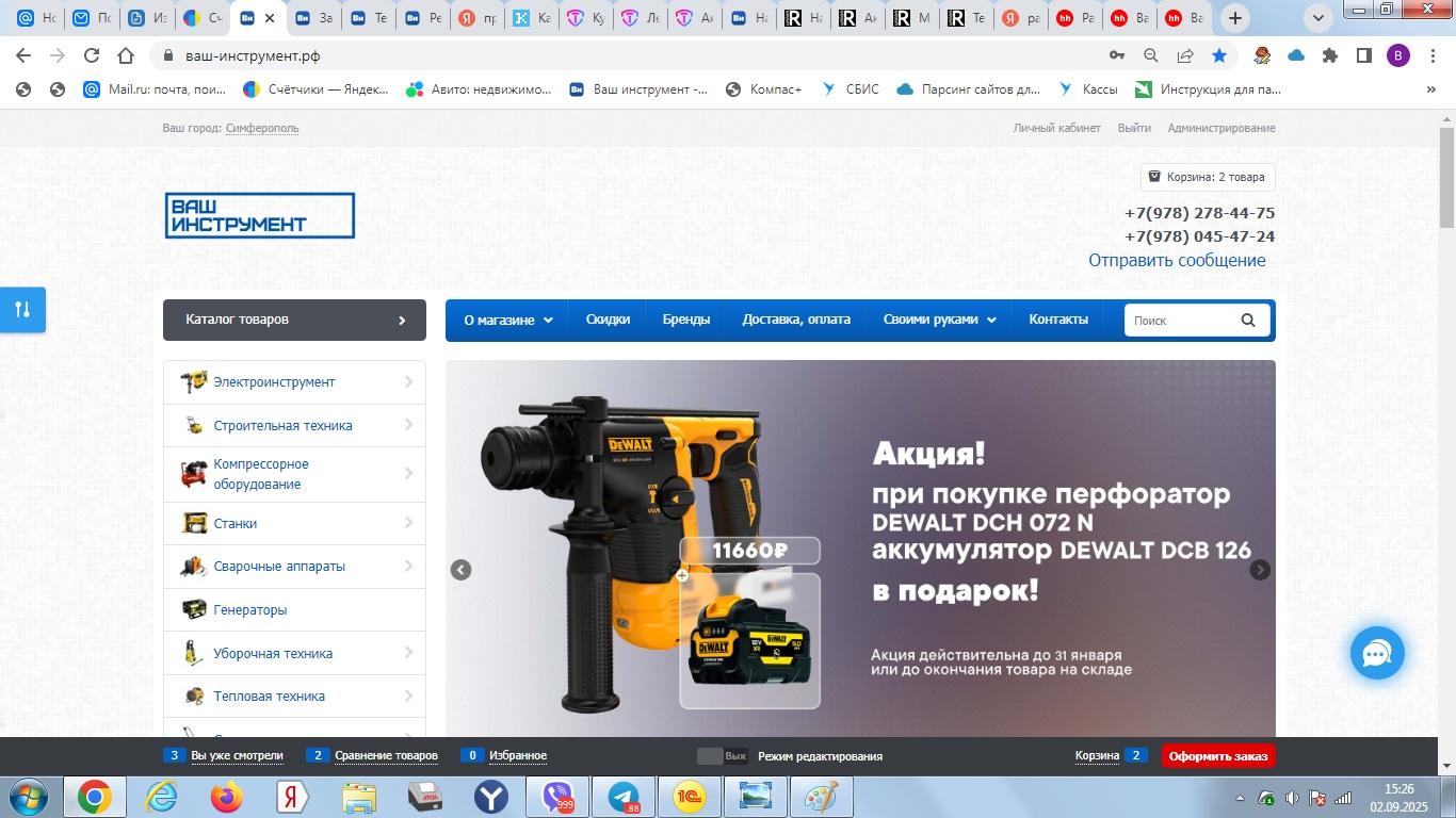 Продаю работающий интернет-магазин электроинструмента Ваш-инструмент.рф