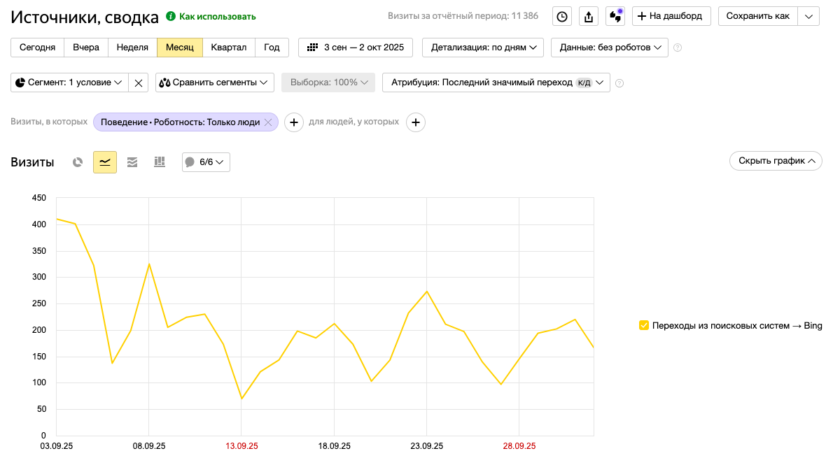 Есть целевая органика с Bing, 150-250 в сутки.