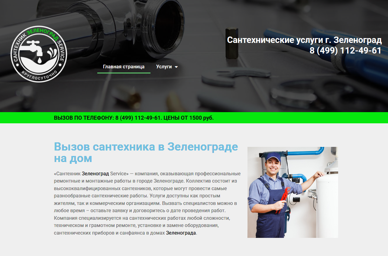 Имеет позиции в поиске Google по запросам "Вызов сантехника в Зеленограде на дом"