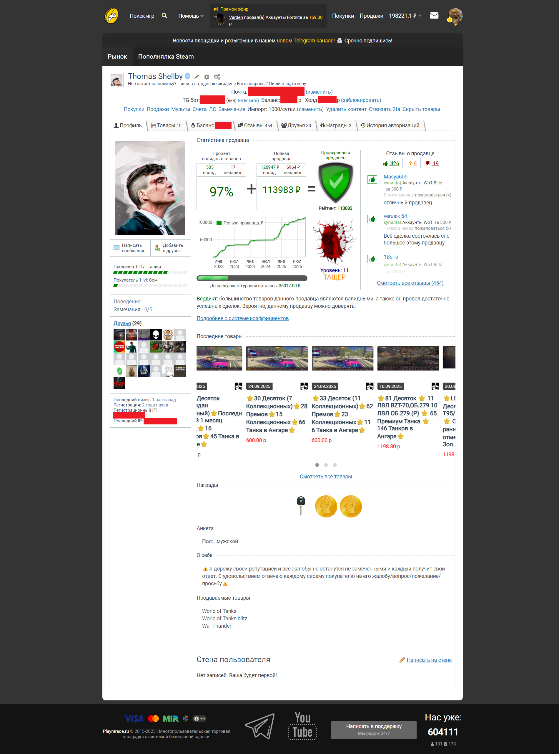 • Аккаунты онлайн-игр/саморег-аккаунты с играми (~60%);