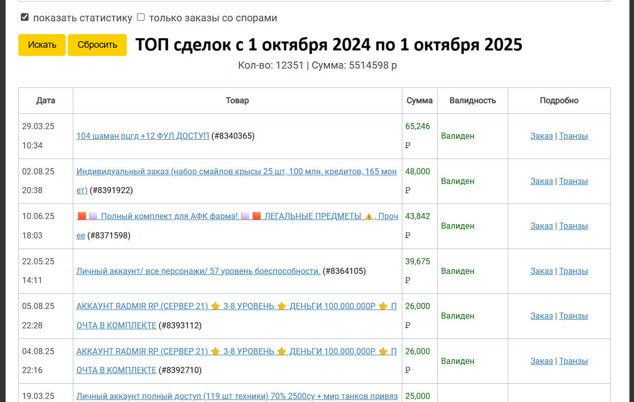 • Оборот: 1029 успешных сделок в месяц на 459549 руб;