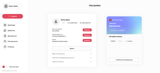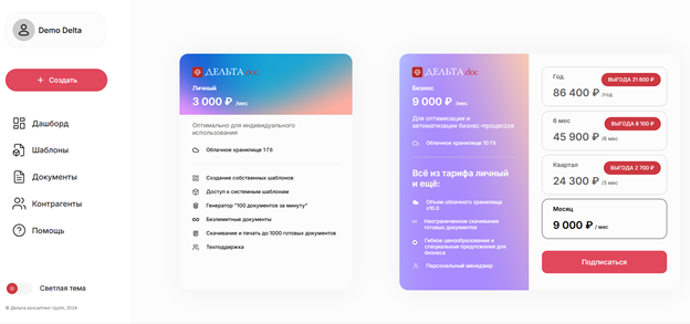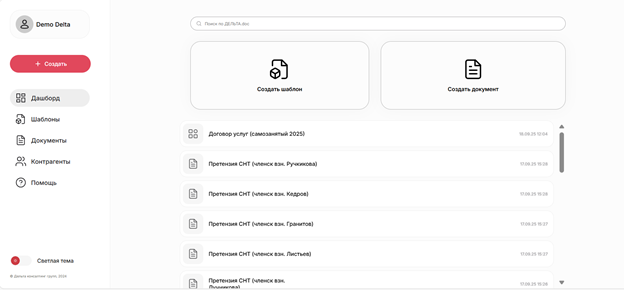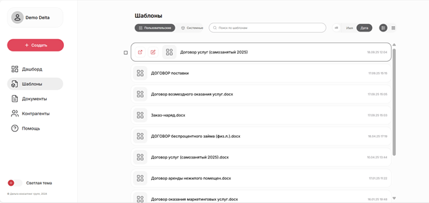 демодоступ - возможность тестировать сервис как пользователь со своей базой шаблонов и документов.