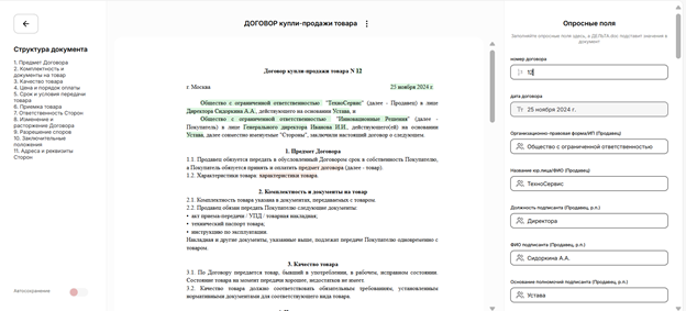 - мгновенная генерация готовых документов.