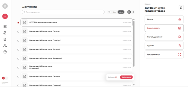 - любой документ пользователя, используемый в качестве шаблона: договоры, письма, коммерческие предложения, претензии, судебные документы и др.
