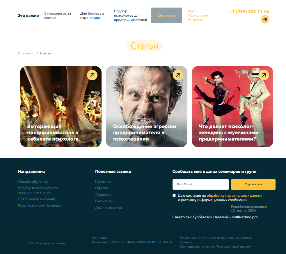 Вместе с сайтом продается:Два небольших канала с уникальным качественным контентом https://t.me/vazhno_pro и https://vk.com/vazhno_pro
