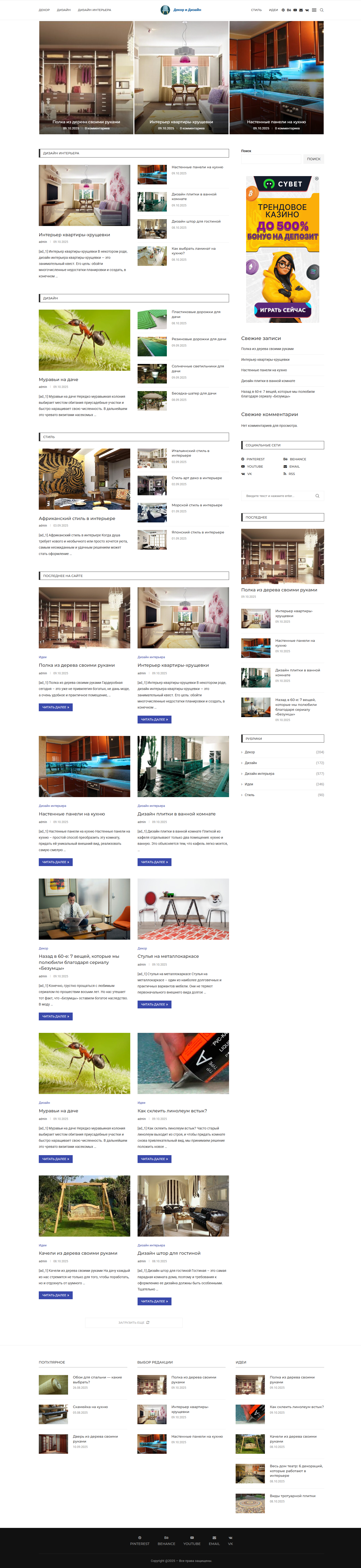 Автонаполняемый сайт о Декоре и дизайне с РСЯ