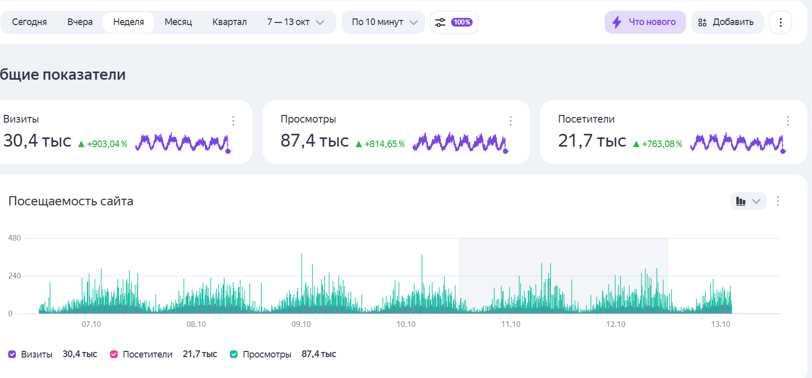 Статистика посещений отображается неправильно, счетчик яндекс метрики установлен на сайт менее недели назад. В среднем это 4 100 уникальных посетителей в сутки в будни и 3 100 в выходные.
