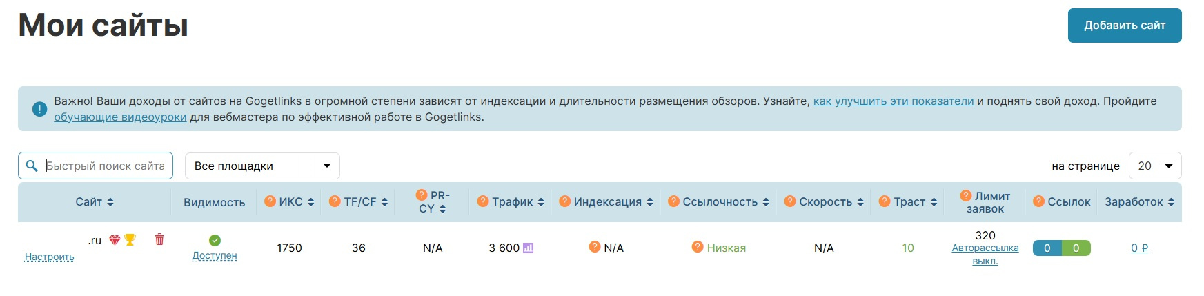 Сайт добавлен в https://gogetlinks.net/. Скриншот прилагаю для оценки перспектив будущего дохода с биржи.