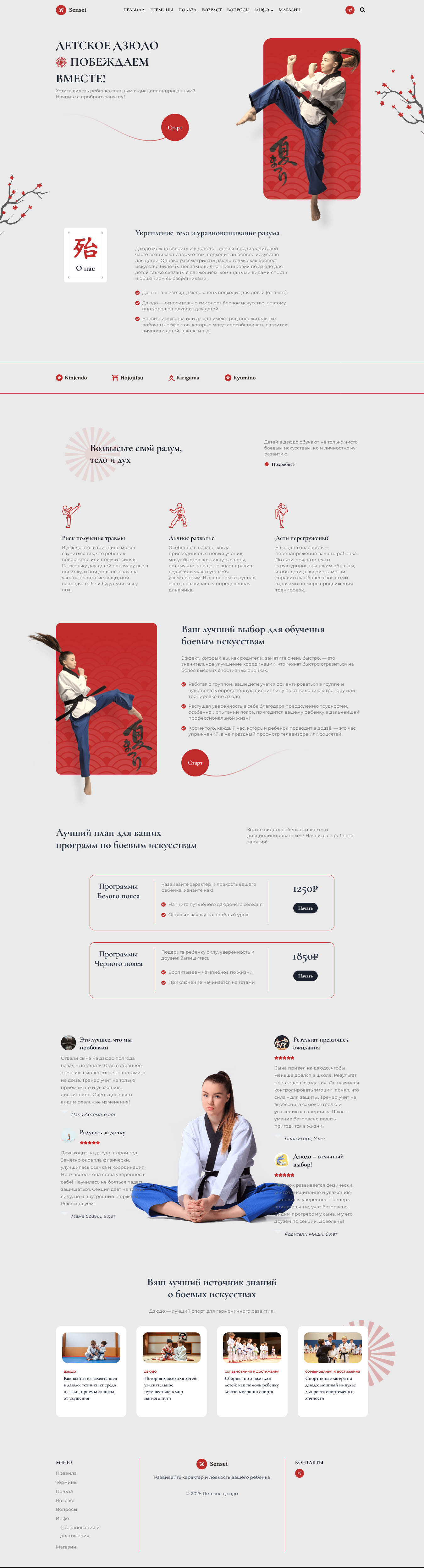 Контент на сайте включает тематические статьи, описание образовательных программ, видеоуроки, рекомендации по разминке и тренировкам, информацию о соревнованиях и спортивных сборах, а также экзаменах и аттестациях. Размещены примеры разминок для детей 5–6 лет, демонстрирующие игровую форму проведения занятий. Дизайн ориентирован на удобство восприятия информации для родителей — структурированное меню, четкие разделы, качественные иллюстрации и видео. Такой подход способствует лучшему вовлечению пользователей и положительно сказывается на SEO-показателях: регулярное обновление контента, использование ключевых фраз, связанных с детским дзюдо и физическим развитием малышей, укрепляет позиции в поисковых системах по тематическим запросам.